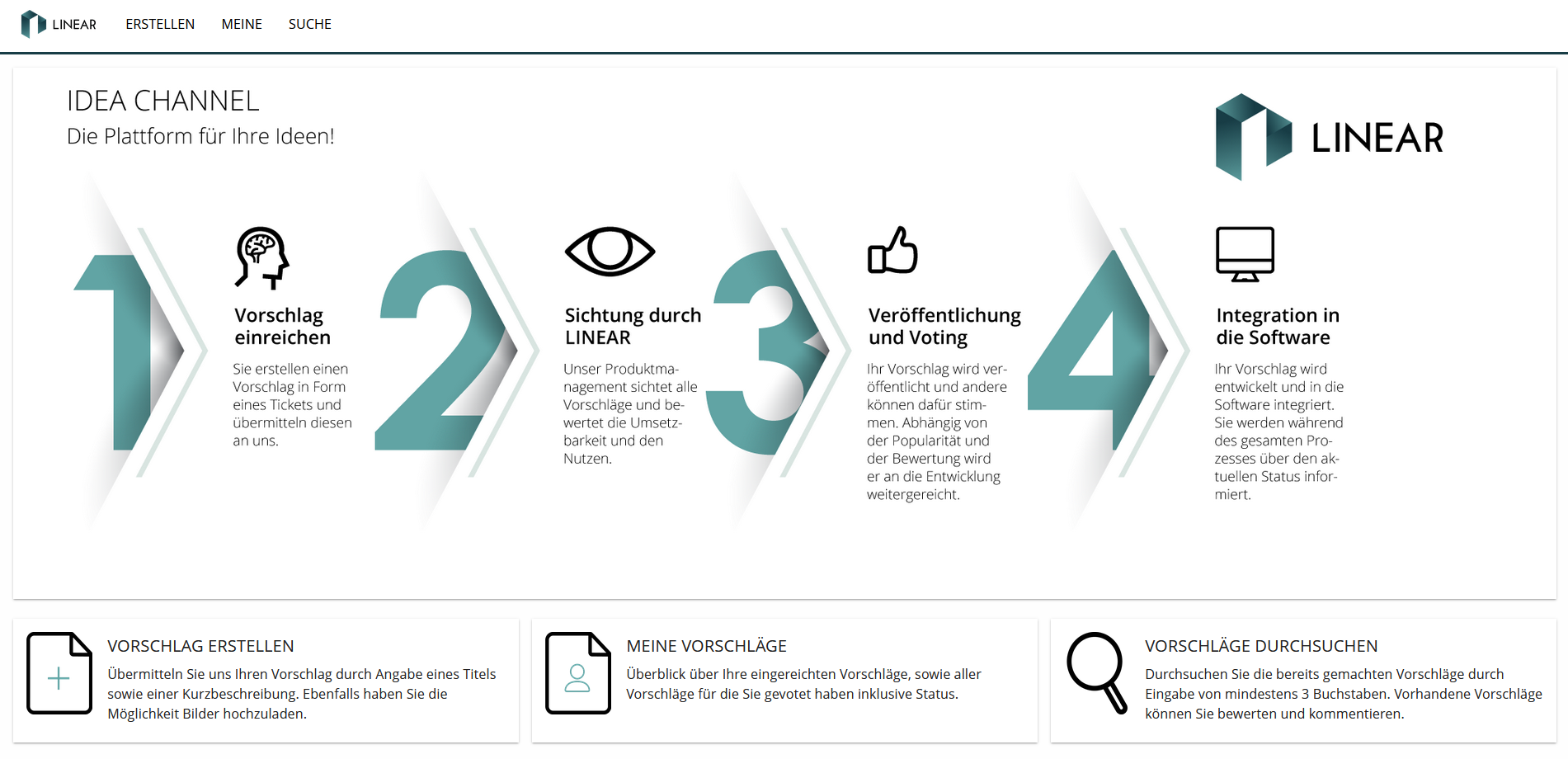 Wir hoffen, dass der LINEAR Idea Channel für Sie von Nutzen ist und freuen uns auf Ihre Ideen und Vorschläge.