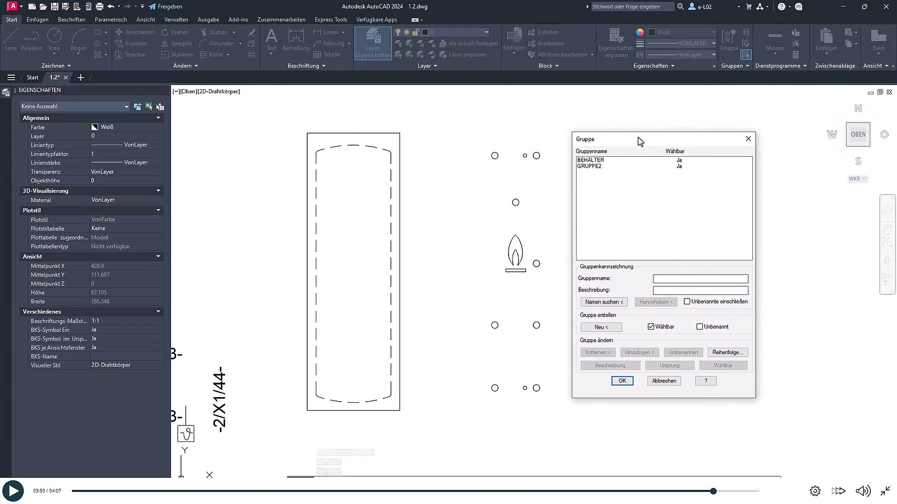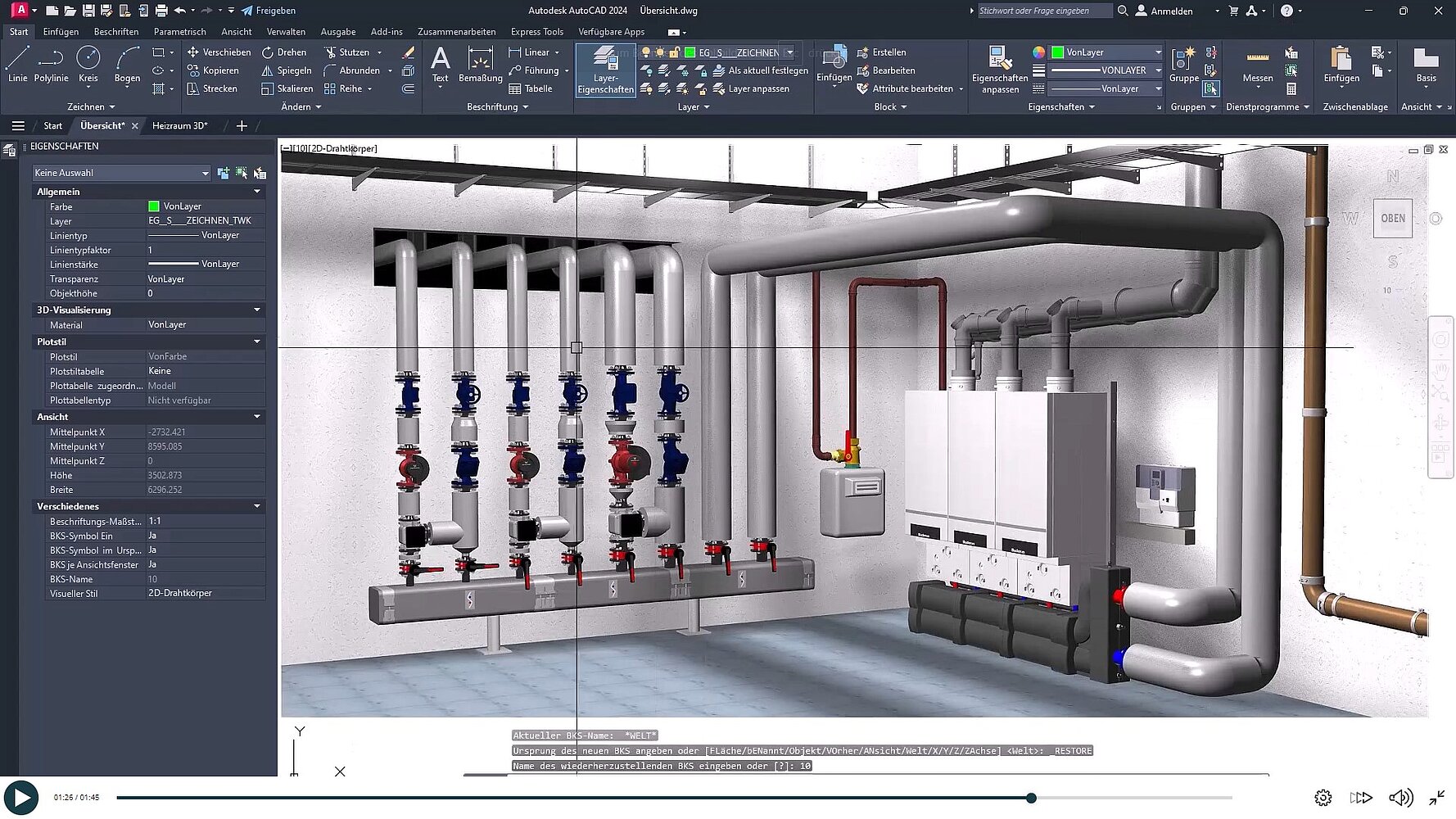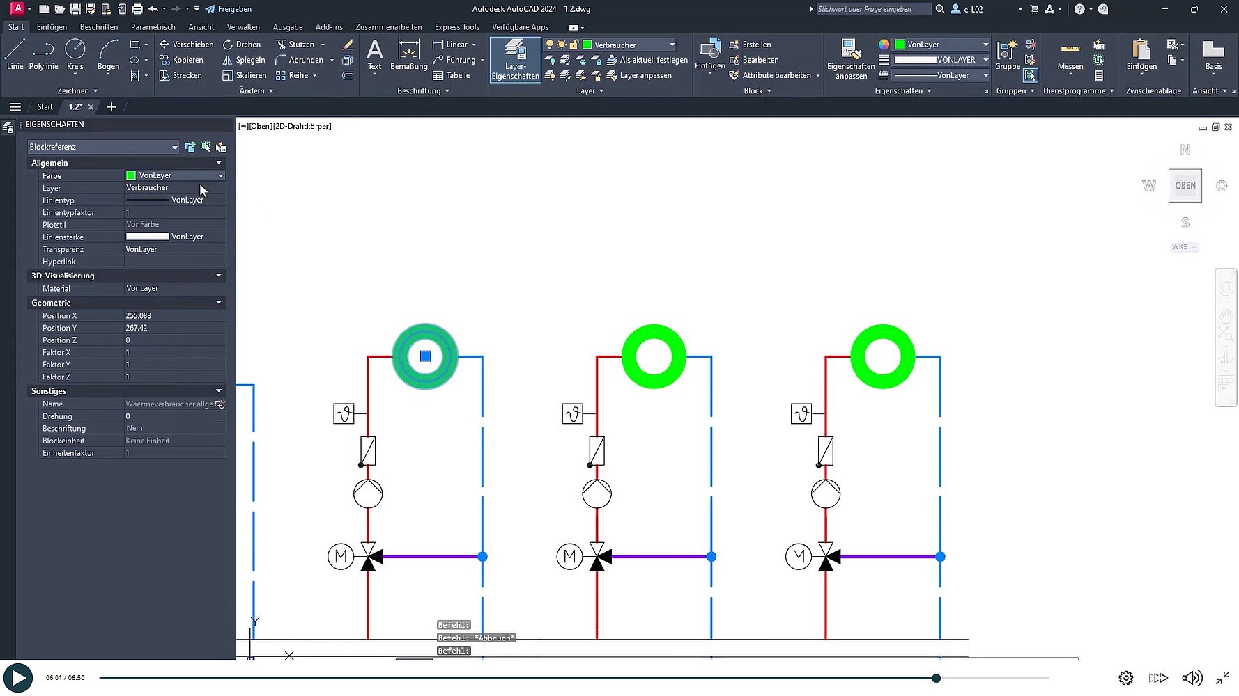 Die Objekteigenschaften betrachten wir ebenfalls und zeigen deren Abhängigkeit von Layern oder Blöcken.