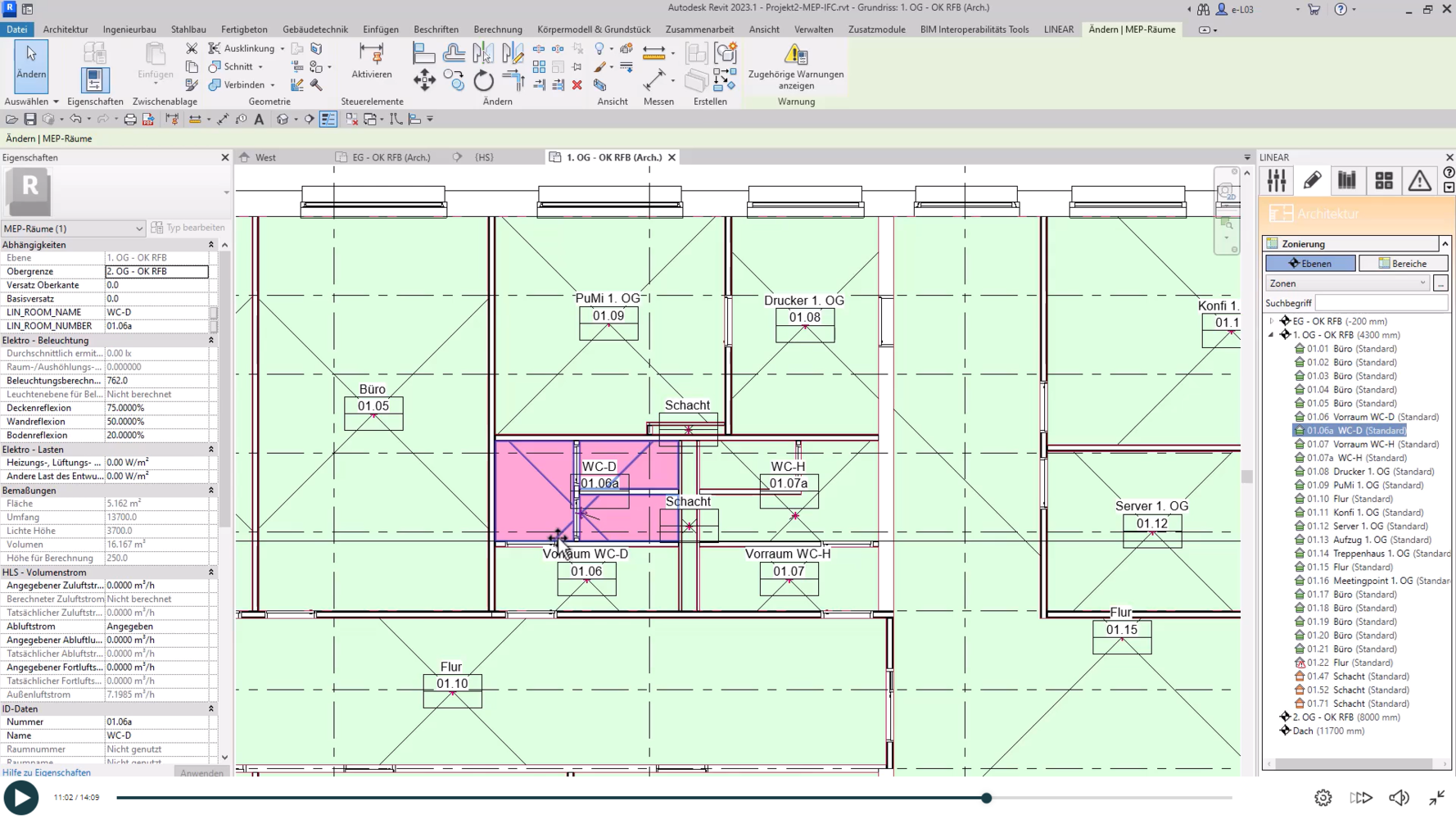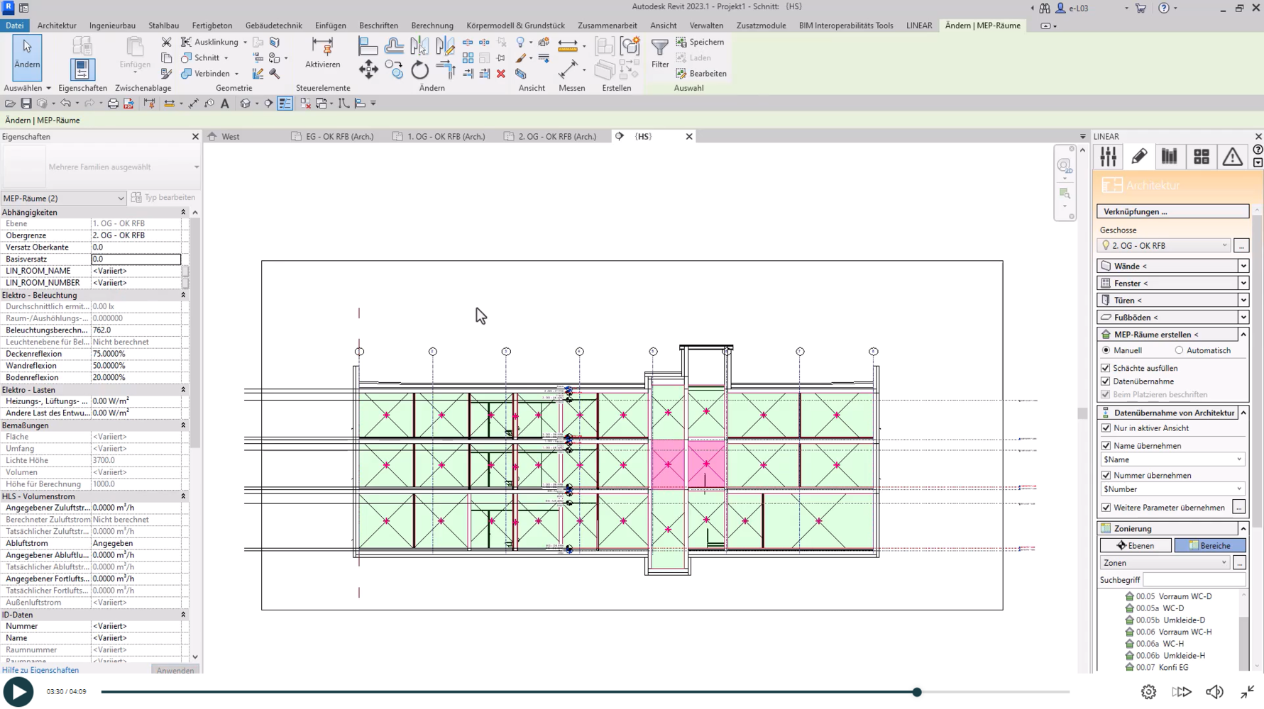3.3 MEP-Räume anlegen mit LINEAR