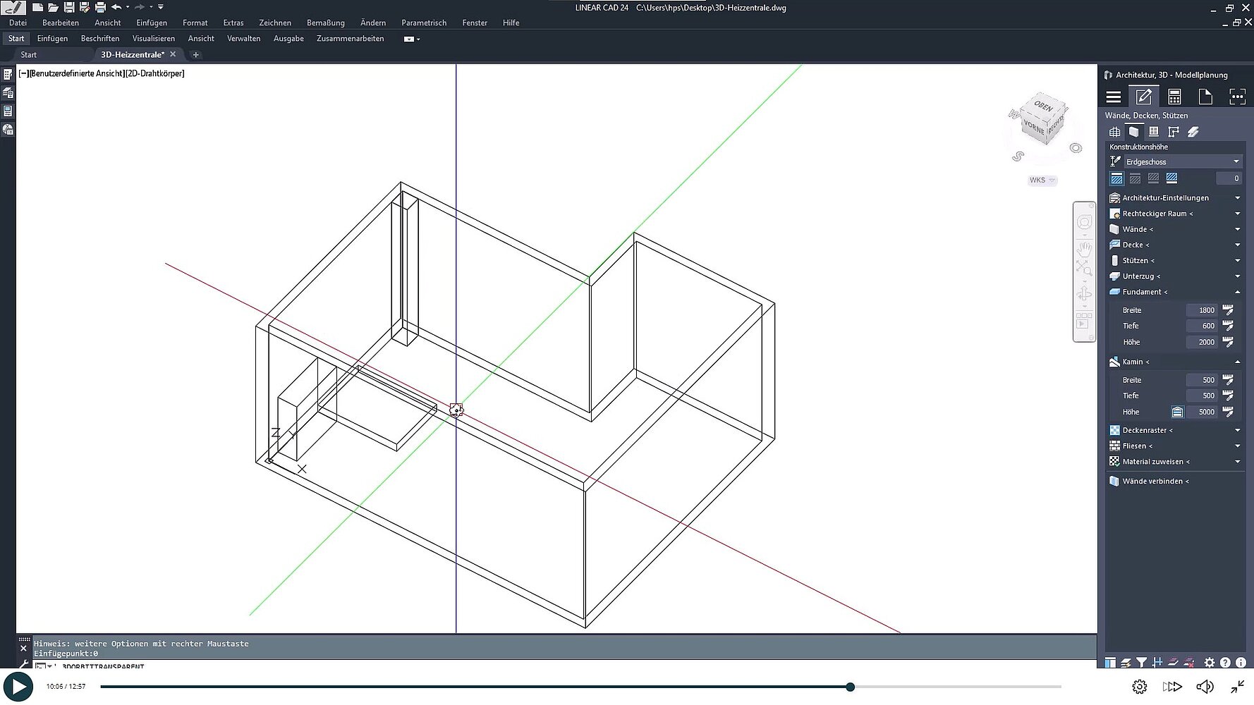 Zu Beginn erstellen wir eine Raumgeometrie, in der wir die Heizungsanlage später installieren.