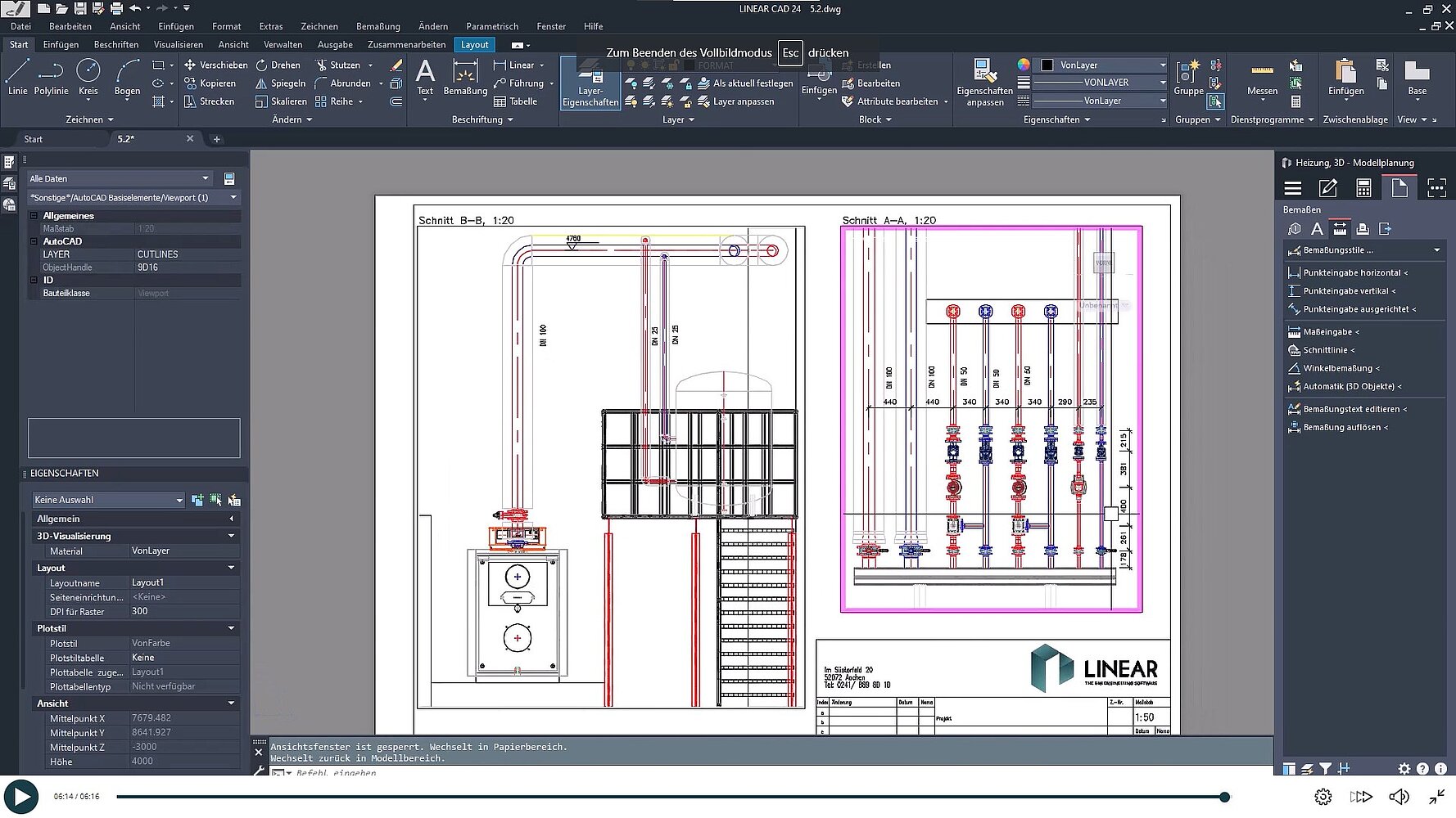 Abschließend erstellen wir die Dokumentation. Neben der Beschriftung zeigen wir Ihnen die Erzeugung von Schnitten und die Ausgabe auf Plänen.