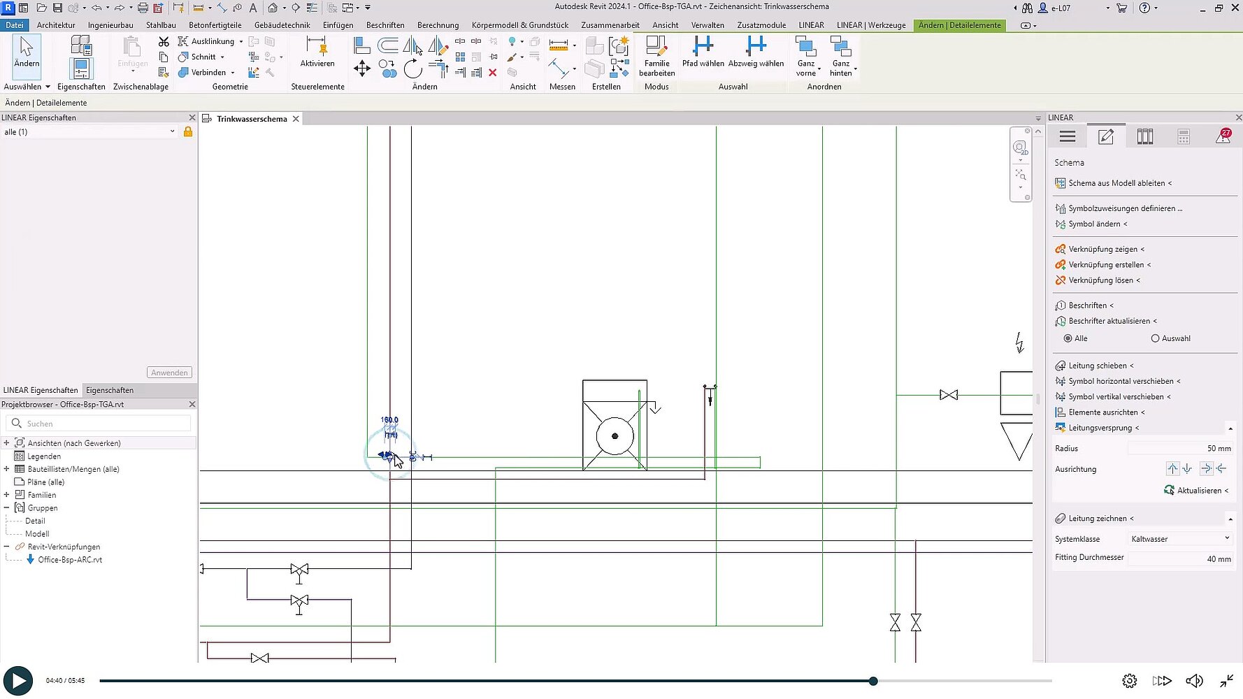 Ebenfalls können Sie noch Anpassungen an den Leitungen vornehmen, um die Darstellung zu optimieren.