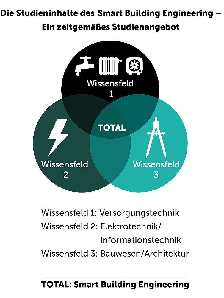 Um hohen Komfort mit niedrigen Verbrauchswerten zu kombinieren, ist der Einsatz fortschrittlicher Gebäudeautomation notwendig. Zudem stellt die Digitalisierung der Gebäudetechnik häufig eine besonders kosteneffiziente Lösung zur Minimierung der Energiekosten dar. Mit der Digitalisierung geht auch eine zunehmende Bedeutung elektrischer Energie bei Gebäuden einher: Das beginnt bei gebäudeintegrierter Photovoltaik über elektrisch betriebene Wärmepumpen bis hin zu dezentralen Batteriespeichern. Daher gehören Inhalte der Informationstechnik und der Elektrotechnik zu den wesentlichen Bestandteilen des Smart Building Studiengangs.