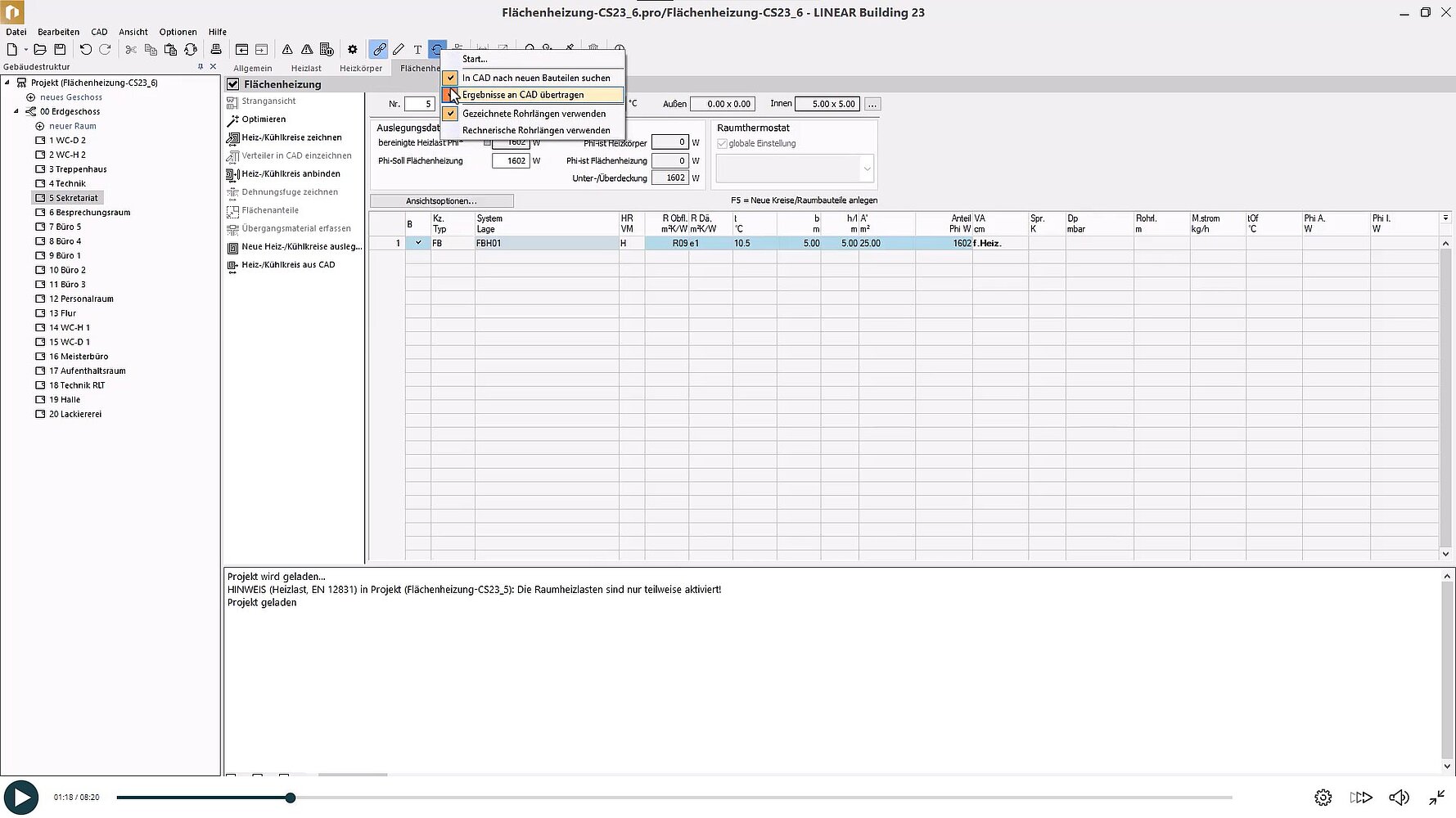- Flächenheizungen im Raum erfassen