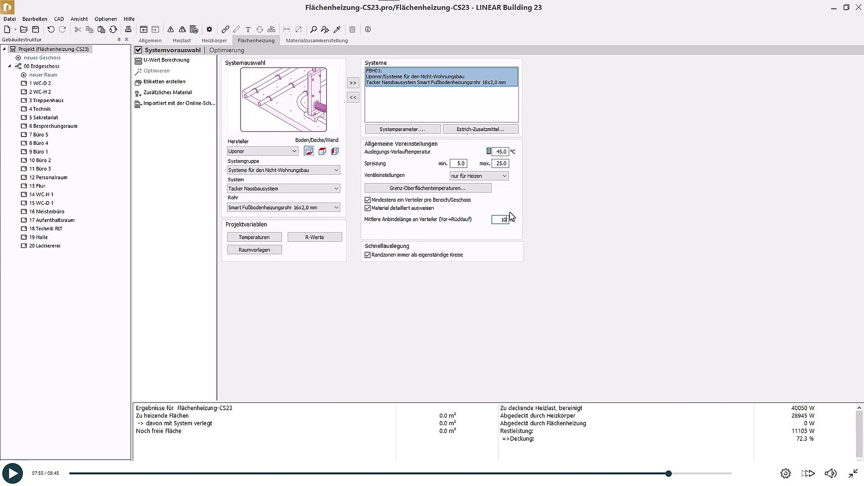 Um den Prozess zu vereinfachen, bieten wir Ihnen die Möglichkeit, allgemeine Voreinstellungen für eine Schnellauslegung zu nutzen, die dann individuell an jede Verlegefläche angepasst werden können. Darüber hinaus sorgen ausführliche Reports dafür, dass Sie stets informiert sind, ob die ausgelegten Flächenheizungen allen notwendigen Kriterien entsprechen. Außerdem erleichtern wir in der Projektübersicht den nachträglichen Austausch von Systemen, sodass Sie stets flexibel auf Änderungen im Projektverlauf reagieren können. Lassen Sie uns gemeinsam die effektivsten Lösungen für Ihre Flächenheizungsprojekte entdecken.