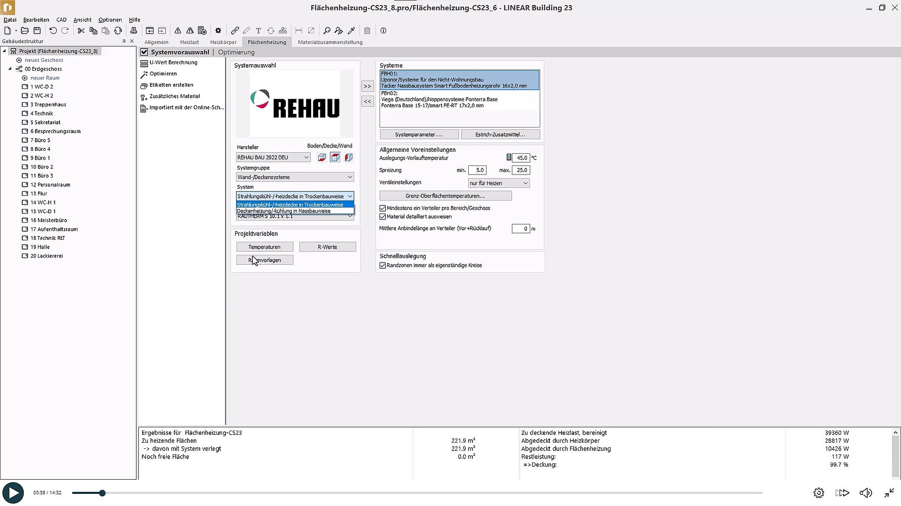 Hier erfahren Sie, wie Sie für jeden Raum basierend auf der erforderlichen Wärmeleistung die optimalen Wärmeübertragungsflächen auswählen und Flächenheizungssysteme effizient auslegen. Wir stellen Ihnen zudem eine umfassende Datenbank mit Herstellerdaten zur Verfügung, die eine breite Palette von Boden-, Decken- und Wandsystemen umfasst, um Ihnen die Auswahl zu erleichtern.