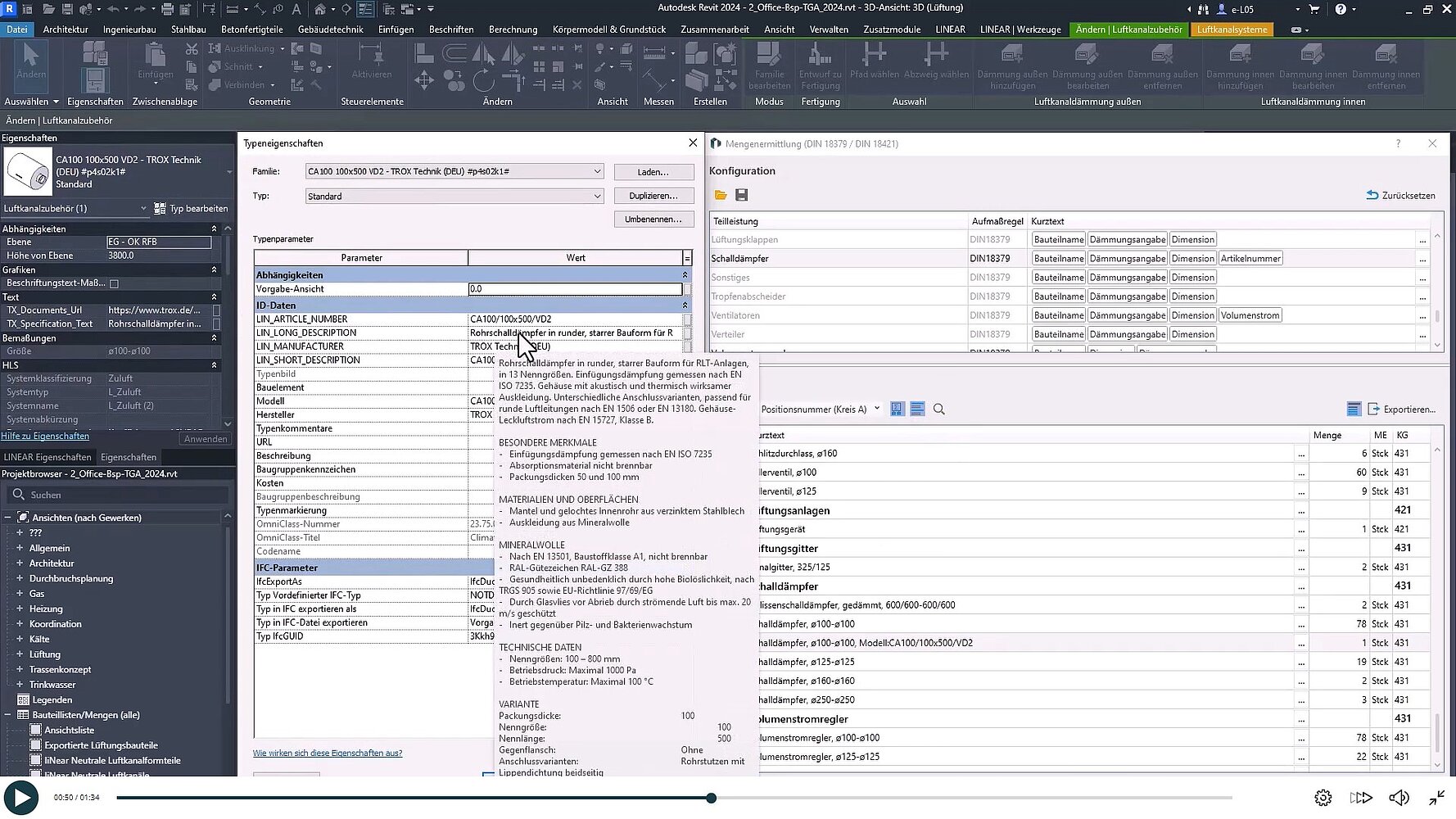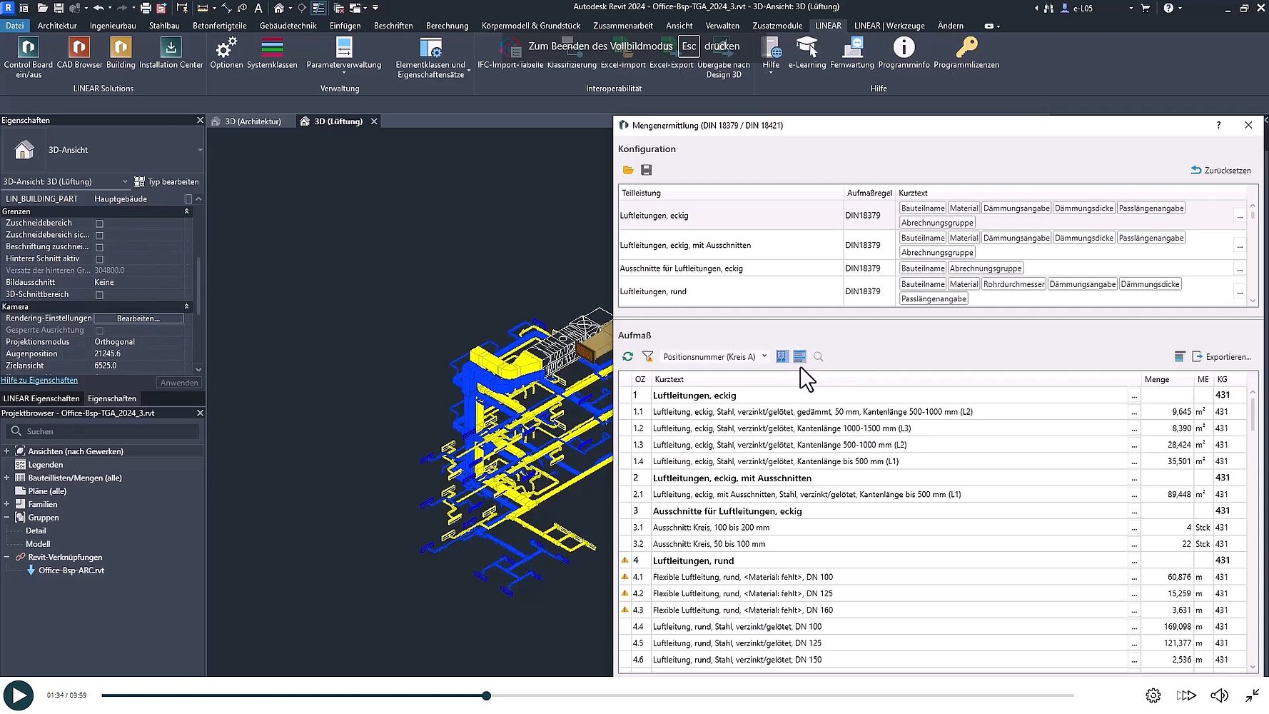 Erfahren Sie in diesem Kurs, wie Sie auf der Basis eines fertig dimensionierten Lüftungsmodells in Revit mit dem Werkzeug der Mengenermittlung (Lüftung) ausschreibungsreife Mengen nach DIN 18379 bzw. DIN 18421 mit entsprechenden Kurztexten erzeugen, die direkt in einer AVA-Software weiterbearbeitet werden können.