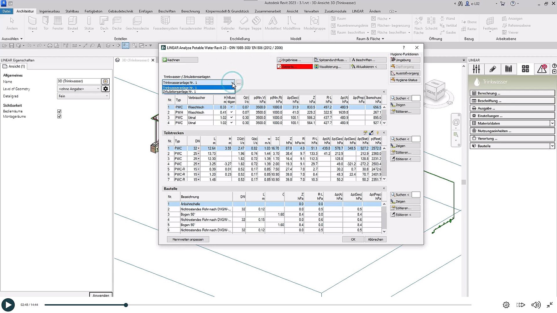 Neuer E-Learning Kurs: Rohrnetzberechnung Trinkwasser in Revit