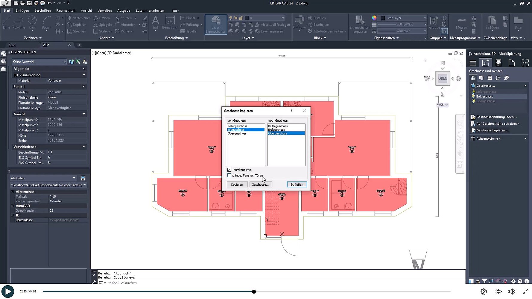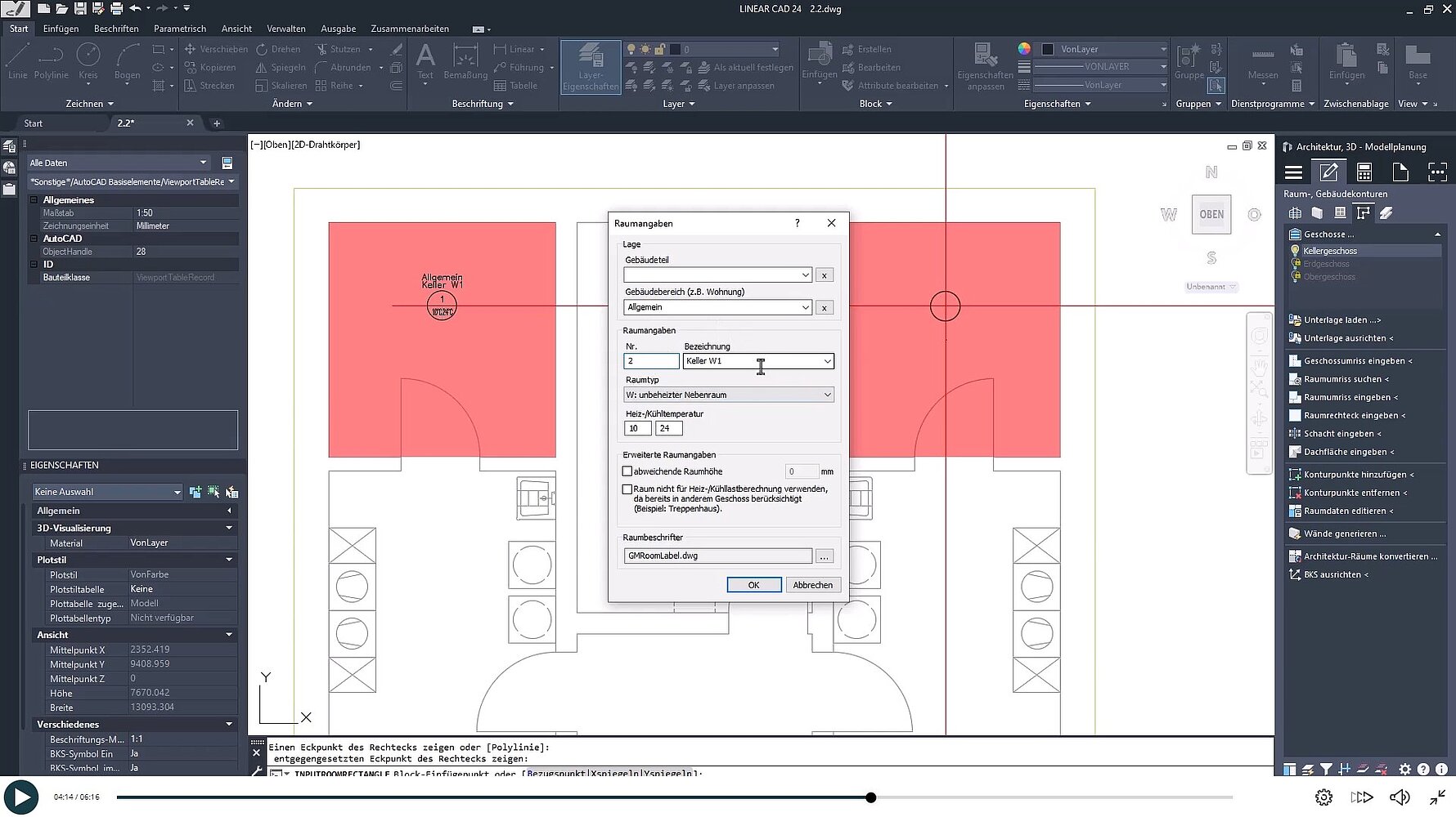 Auf Basis der Räume können dann die Wände automatisch generiert sowie Fenster und Türen definiert werden.