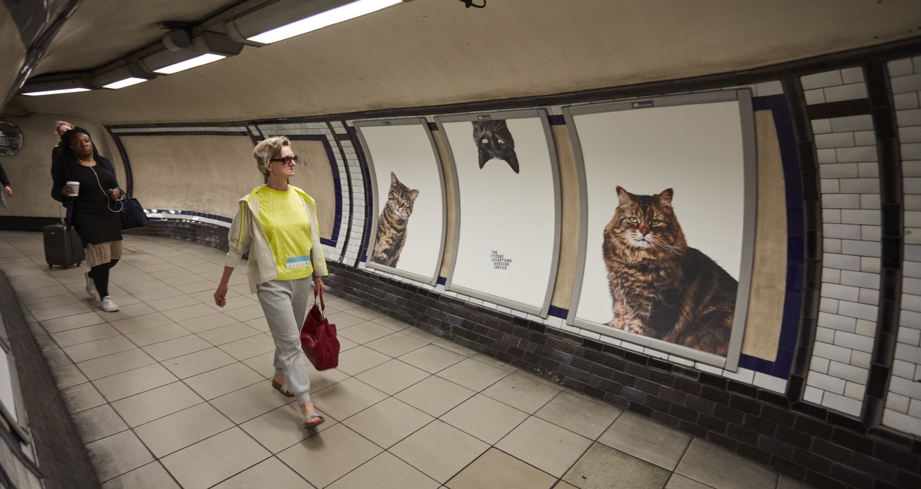 Ein Künstlerkollektiv aus London namens „Glimpse“ erschuf den „Citizen Advertising Takeover Service“ (CATS). Diese Aktion hatte zum Ziel, einen öffentlichen Raum zu schaffen, in dem wir uns wohlfühlen können. Zu diesem Zweck wurden Plakatwände in Londoner U-Bahn-Stationen angemietet. Das Ergebnis kann der Abb. 3 entnommen werden: Lauter Katzen schauen den geschäftig vorbeischreitenden Menschen entgegen. Die CATS-Aktion zog die Aufmerksamkeit neugieriger Pendelnder und Besuchender auf sich und die Menschen kamen zufällig ins Gespräch. Eine U-Bahn-Station entpuppte sich für die Zeit der Aktion als ein Raum der Begegnungen.