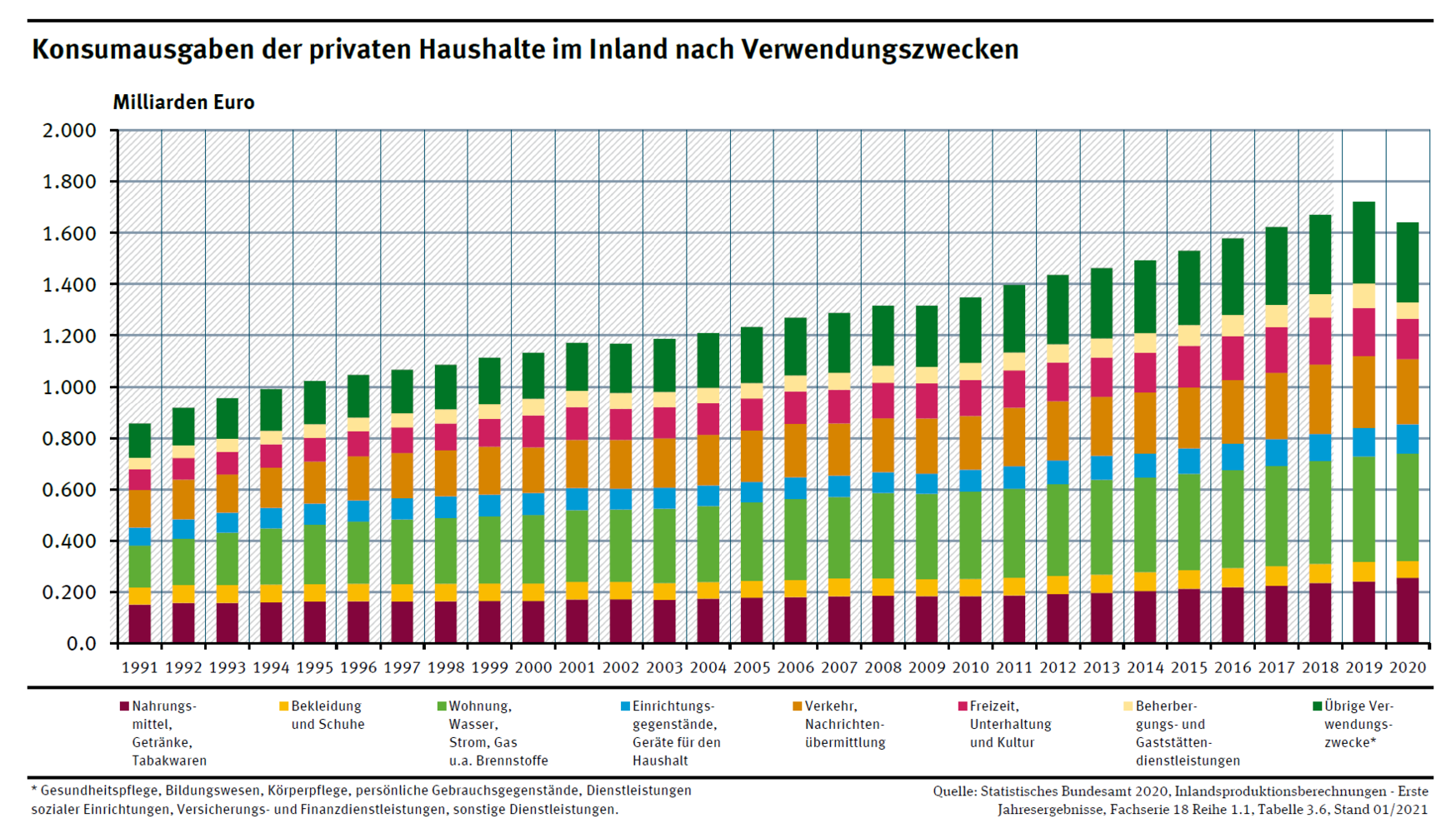 Die Konsumausgaben sind seit 1991 pro Haushalt in Deutschland stetig gewachsen, wie Abbildung 1 zu entnehmen ist. Laut statistischem Bundesamt (destatis) besitzt allein in Deutschland jede Person um die 10 000 Gegenstände. Im Vergleich dazu sind vor 100 Jahren die Haushalte noch mit 180 Gegenständen ausgekommen.