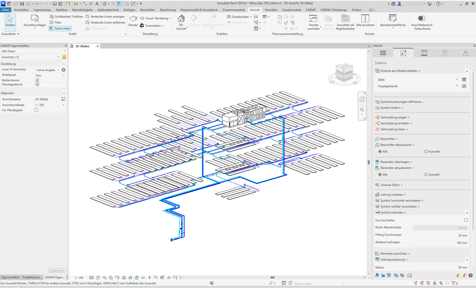 Die im Raumbuchmodul gesammelten Informationen sind eine wertvolle Grundlage für Berechnungen, z. B. der Heiz- und Kühllast, und werden über alle relevanten LINEAR-Planungsmodule hinweg synchronisiert. Das Raumbuch dient als zentrale Datensammelstelle, die dauerhaft gepflegt und von allen Projektbeteiligten genutzt werden kann.