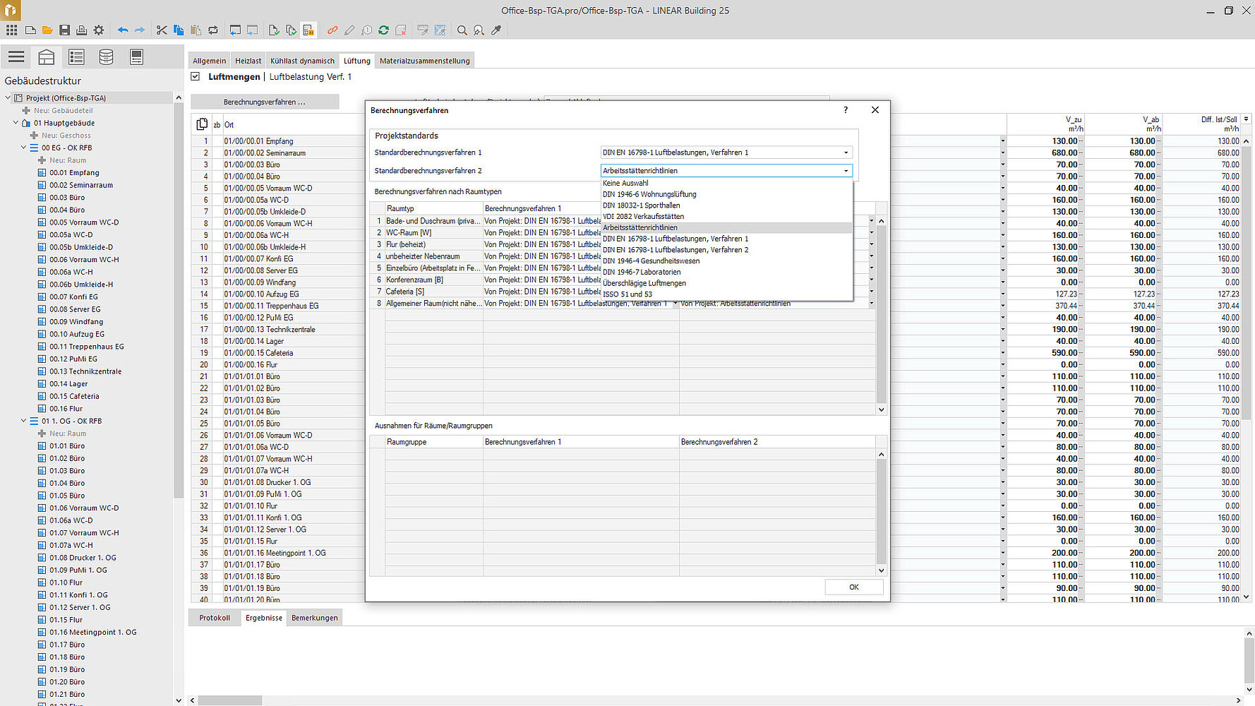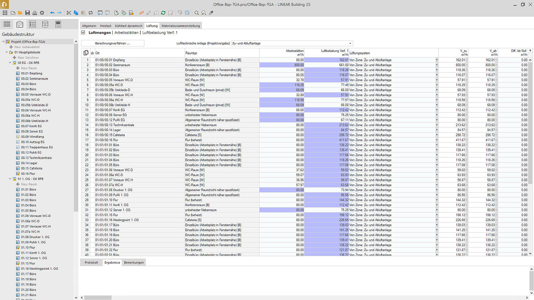 - Zentrale Raumtabelle für die Luftmengenermittlung mit der Möglichkeit, mehrere Räume gleichzeitig zu editieren