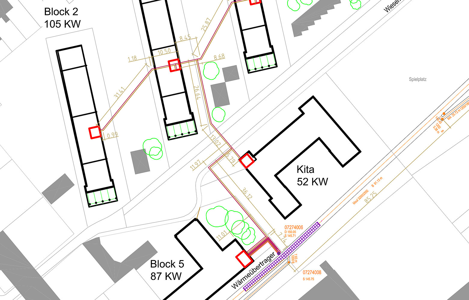 The CAD and calculation implementation was carried out by the ECO.S engineering office with software solutions from LINEAR. ECO.S has been using these software solutions successfully for more than 10 years and appreciates in particular the detailing and depth in the technical calculations. Especially important are the calculation possibilities of the LINEAR software in the area of the used dwelling stations on the heating as well as on the potable water side. By the possibility of the selection of different simultaneity approaches the systems can be simulated and optimized. Beyond that also the dimensioning of the buffer memory is possible over the LINEAR software, indispensable for the correct interpretation of a heating system with dwelling stations. Extensive data sets of specialized manufacturers round off the service portfolio and allow the generation of correct mass compilations directly from the calculations.