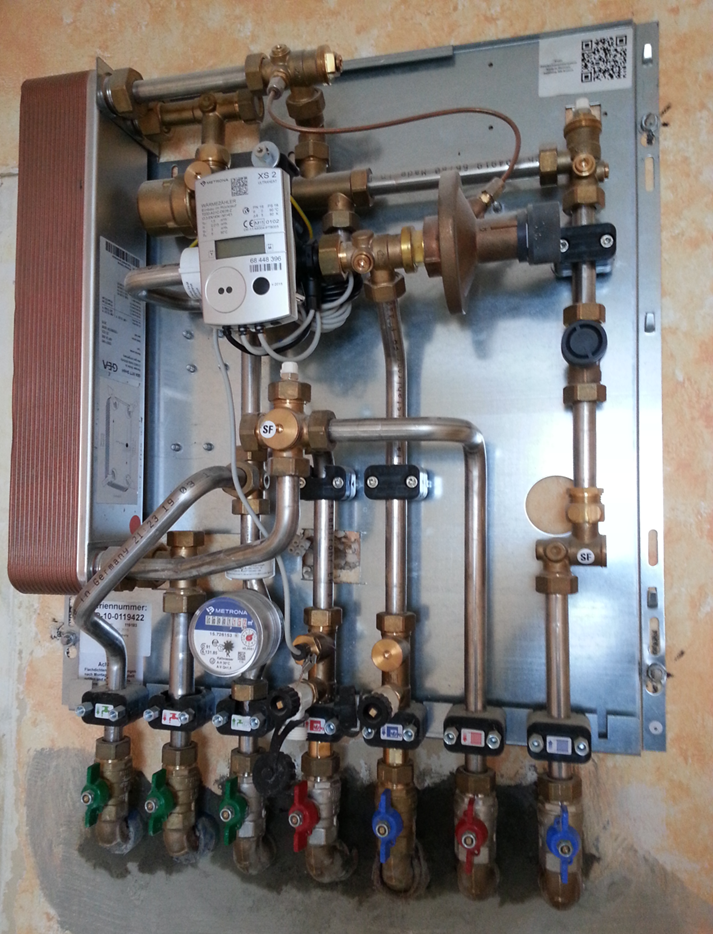 - Fittings for hydraulic balancing of the heating network (this also takes place in the dwelling station)
