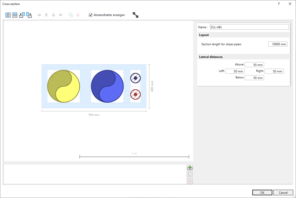 Now the various assignments can be entered much more quickly in the form of a simple list, and only when you want to specify a particular layout, you can start using the cross-section editor on the basis of this list and arrange pipes and ducts above and next to each other. For this purpose the cross section editor has been completely redeveloped - even though it was not that old - to meet the changed requirements. In addition to the much more intuitive drag & drop handling, it now also has the ability to react correctly to dimension changes within such cross sections. So once a layout has been defined it can be re-used over much longer distances. The pipes and ducts automatically generated for the next design step are thus brought to the desired position more precisely and with even less effort in advance!