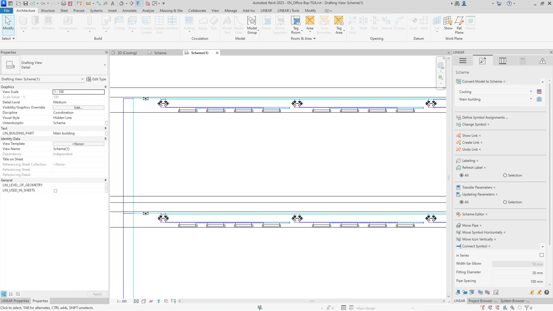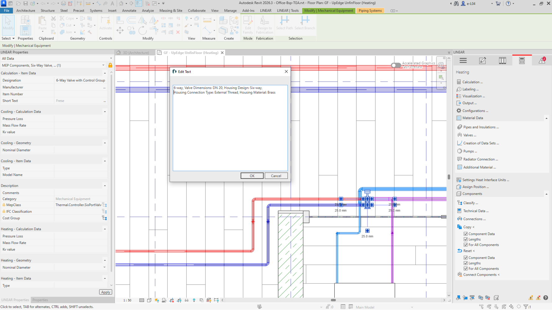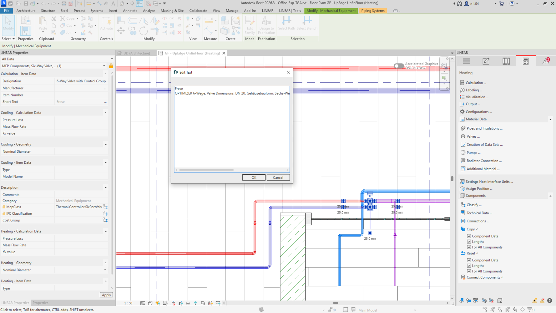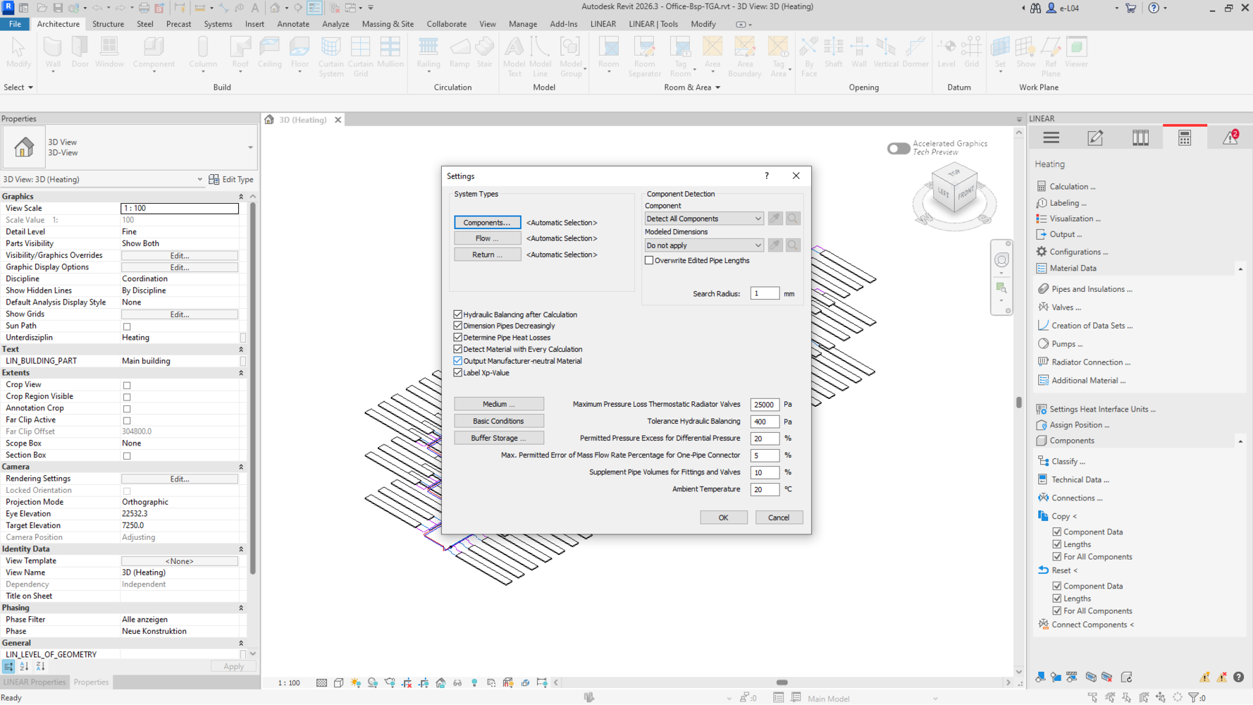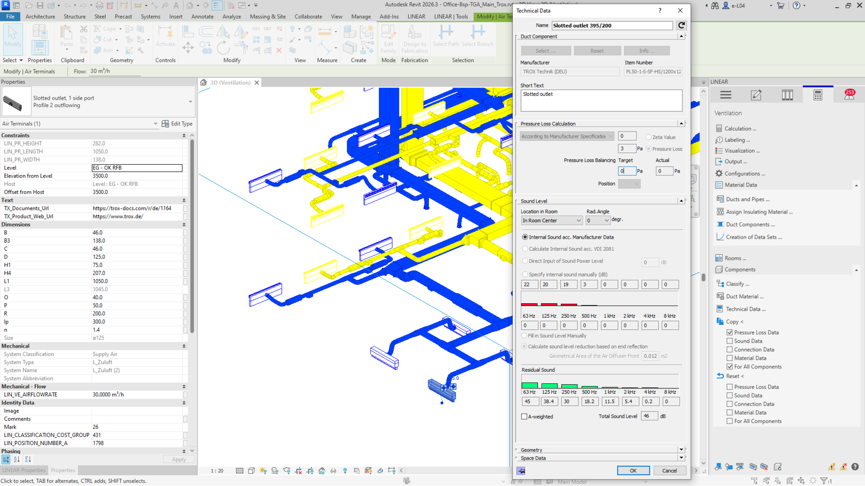 The information collected in the Room Data Sheet module provides a reliable foundation for calculations, such as heating and cooling loads, and is synchronized across all relevant LINEAR planning modules. The Room Data Sheet serves as a central data collection point that can be continuously maintained and used by all project participants.