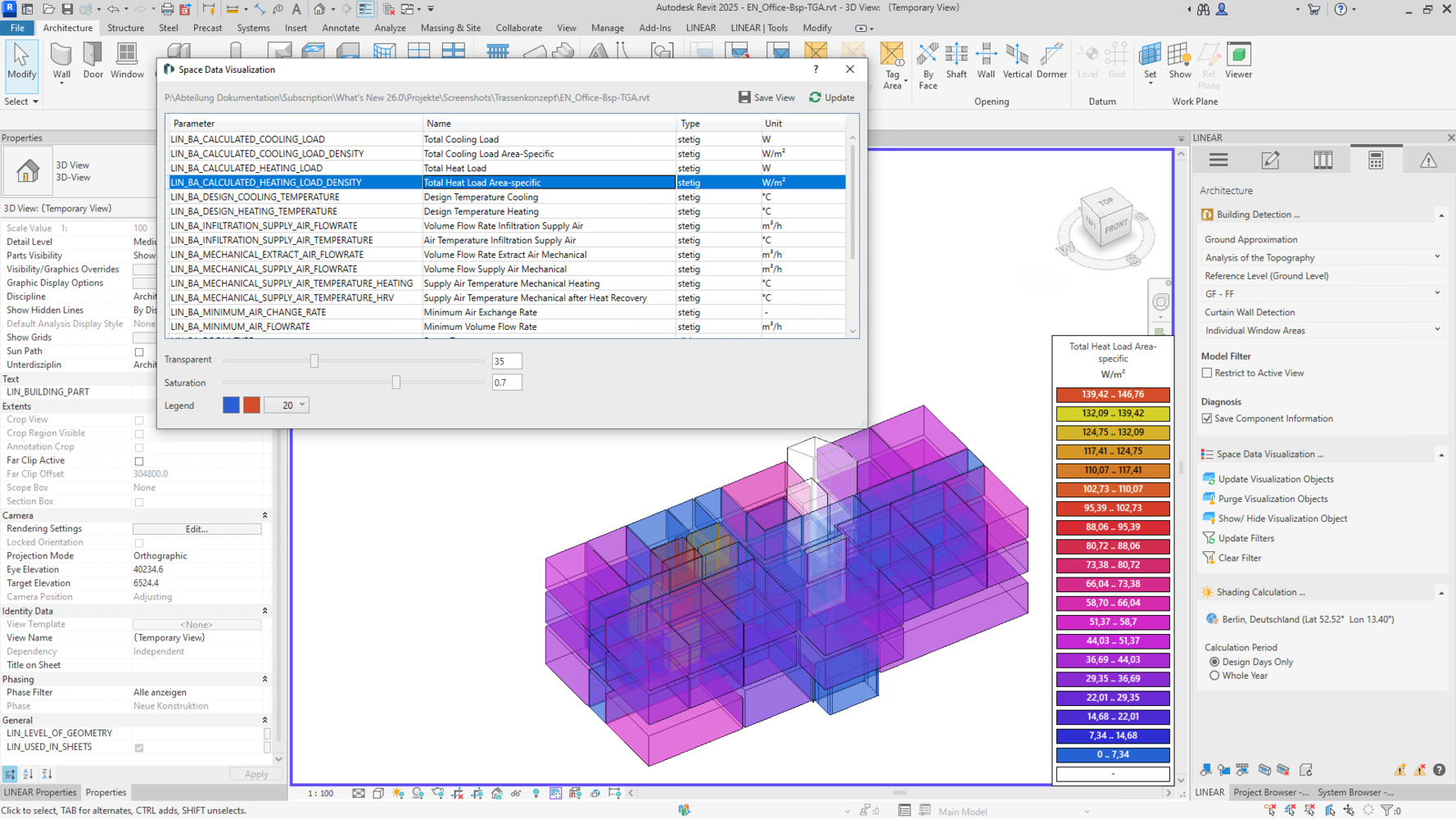 The new Room Data Sheet module in LINEAR Building marks a decisive step toward BIM-compliant planning. It enables the management of digital, machine-readable room parameters from early design phases – whether a complete CAD building model exists, or the data originates from Excel. The Excel Room Data Sheet synchronization available since version 25.2 has been comprehensively enhanced in version 26.0. The new module can store, display, edit, verify, and calculate virtually any conceivable room parameter. Native LINEAR parameters, user-defined parameters, as well as CAD and Excel imports are all equally supported.