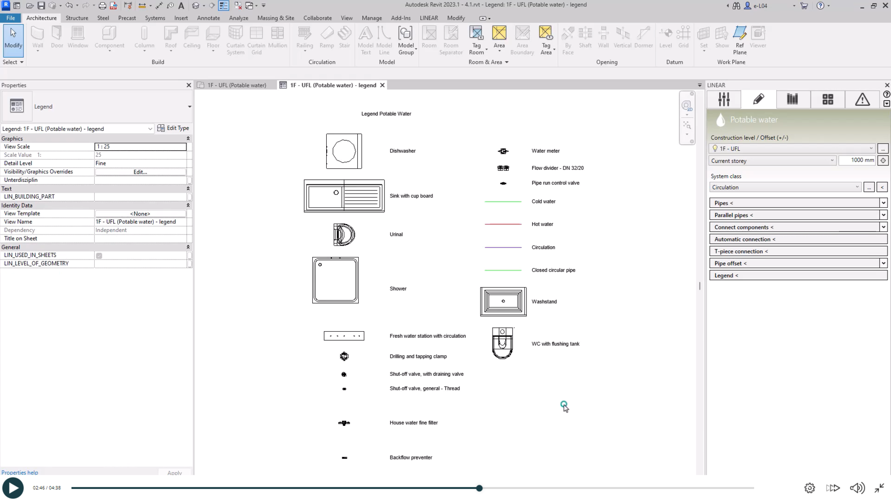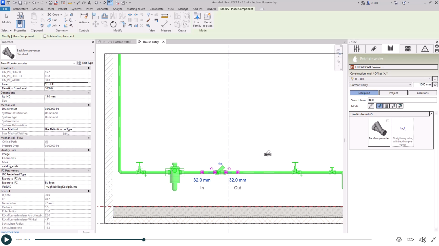 Om een drinkwaterleidingnet te tekenen en te berekenen, moet het eerst correct worden gepland. Op het gebied van drinkwater worden hygiënische en thermische aspecten toegevoegd aan de hydraulische overwegingen. Met ringleidingen, circulatieleidingen en stromingsverdelers wordt gestreefd naar een leidingnet zonder stilstaand water. Het leidingtracé en de isolatie van de leidingen moeten worden aangepast aan de omgevingstemperatuur van de leidingtrajecten. Hoe dit comfortabel te implementeren met LINEAR op Autodesk Revit is de inhoud van deze cursus.