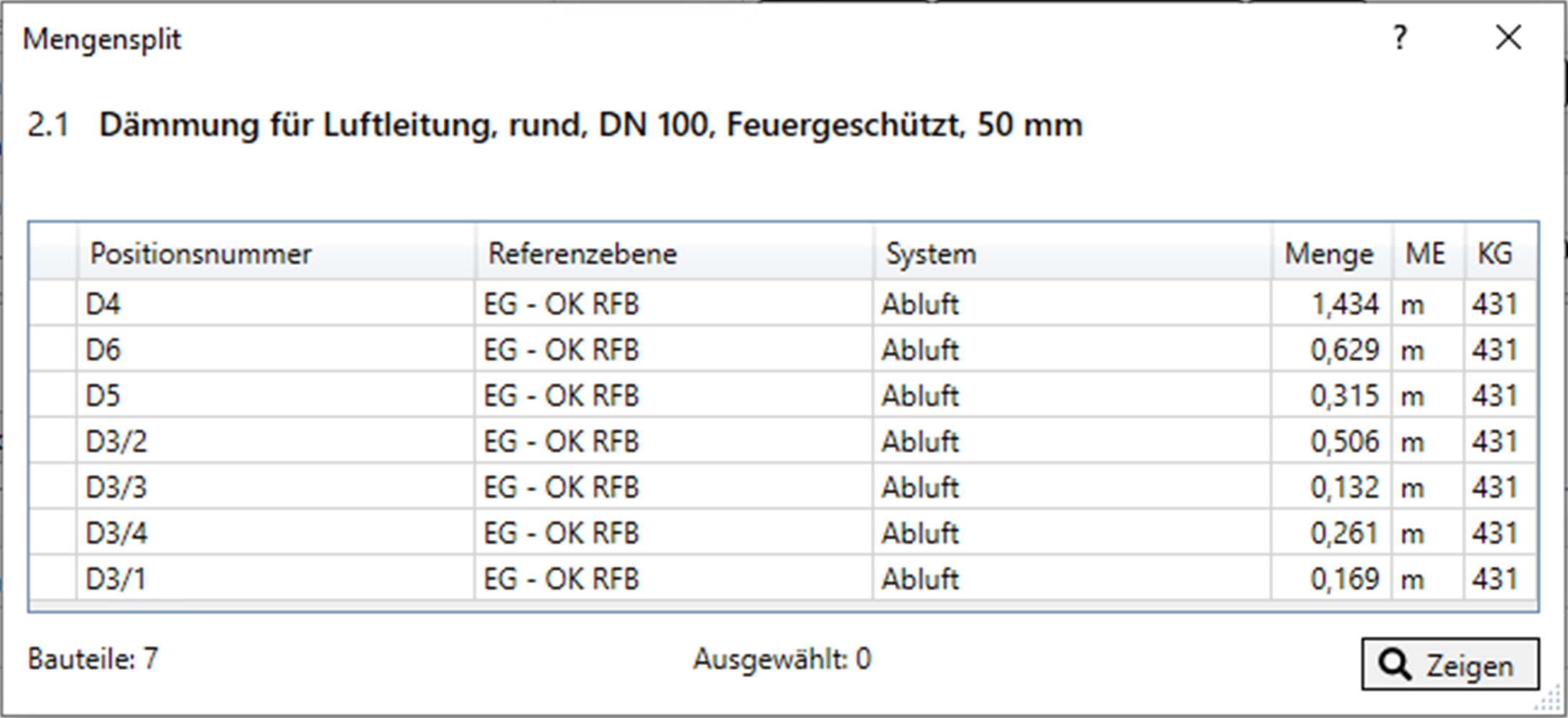 Na het berekeningsproces worden de afzonderlijke doorsneden of deelhoeveelheden duidelijk gelokaliseerd op het bijbehorende onderdeel via het venster voor het opsplitsen van hoeveelheden en kunnen ze in het model worden weergegeven met behulp van het vergrootglas. De toewijzing van artikelnummers is optioneel en een extra hulpmiddel bij het begrijpelijk documenteren van gunnings- en facturatiehoeveelheden in het daaropvolgende AVA-proces. De weergegeven hoeveelheidssplitsingsinformatie wordt 1:1 overgenomen voor de bestandsexport naar GAEB XML.