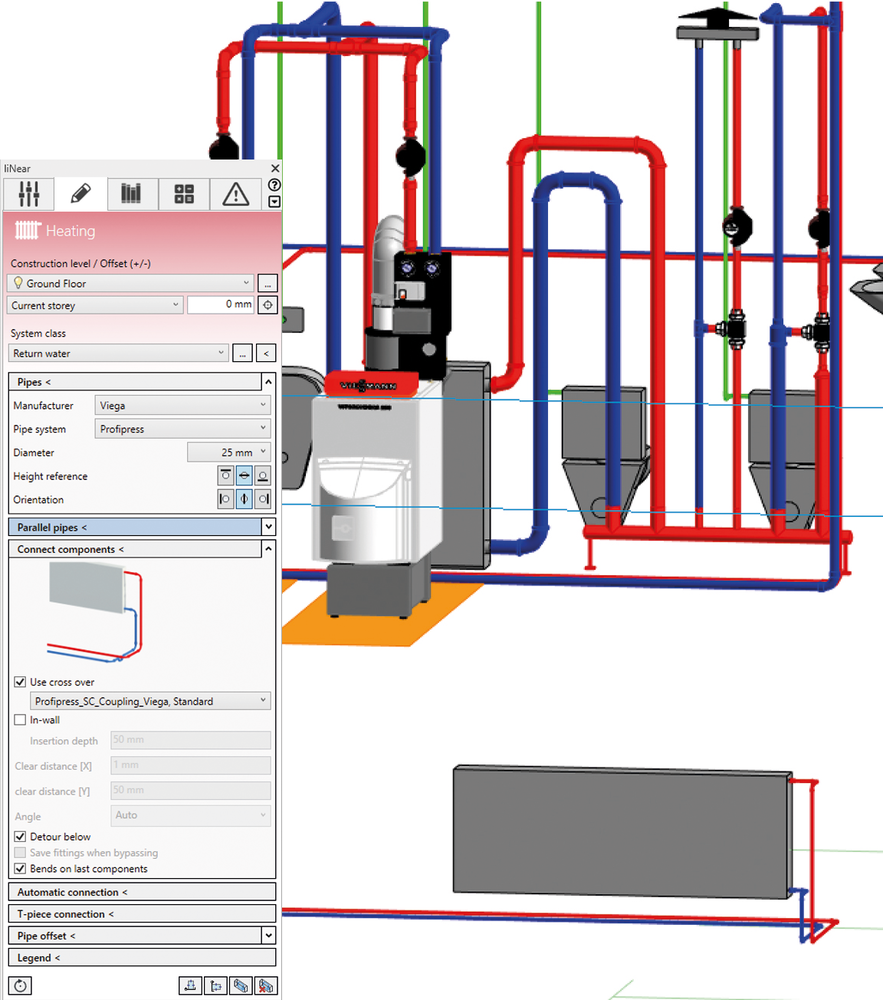 - bidirectionele aansluiting voor het berekenen van paneelsystemen in LINEAR Building. Paneelsystemen ontworpen in LINEAR Building kunnen rechtstreeks in het model worden geplaatst en omgekeerd kunnen in het model ontworpen paneelsystemen ook rechtstreeks in LINEAR Building worden berekend en hydraulisch op elkaar worden afgestemd.