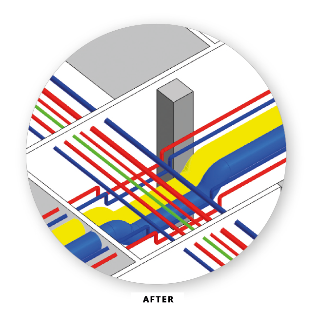 Geïntegreerd ontwerpen betekent dat, zelfs in de vroege ontwerpfasen, alle spelers samenwerken aan het gebouwconcept. Met onze tools voor het ontwerpen, dimensioneren en plaatsen van technische ruimten en toevoerleidingen kunt u al in de voorlopige ontwerpfase de integratie van de MEP-systemen optimaliseren in samenwerking met andere vakgebieden. De resulterende initiële inspanning wordt in latere ontwerpfasen meer dan gecompenseerd door een vermindering van het aantal wrijvingspunten.