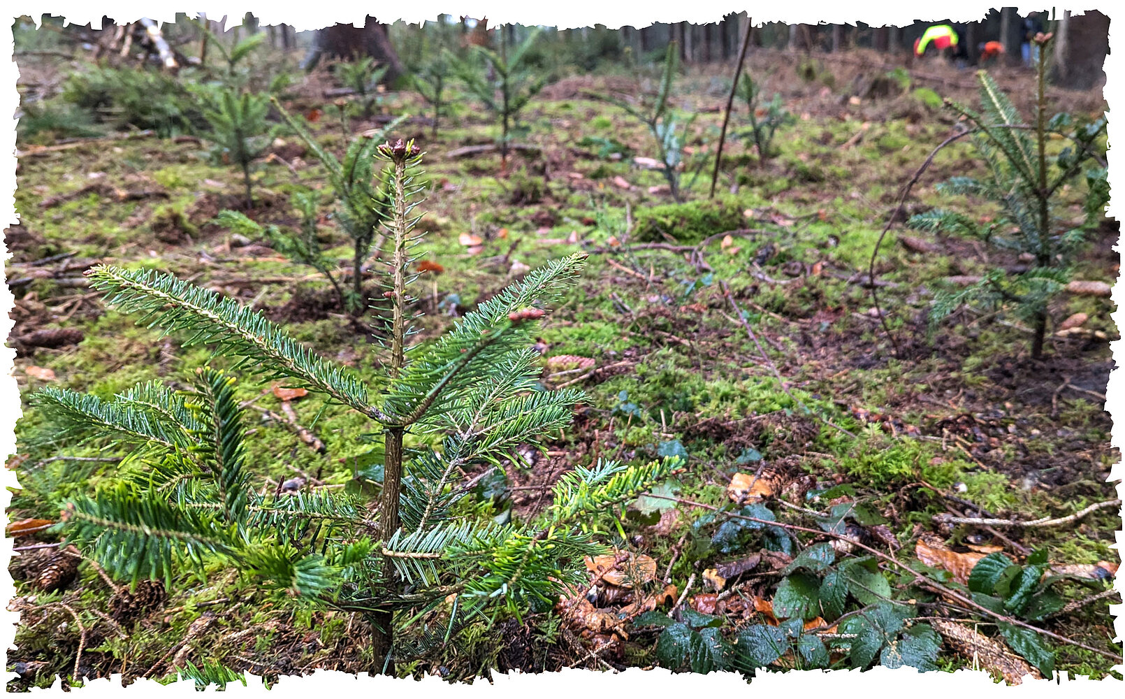 Ale co oznacza "odporny na zmiany klimatu" lub "stabilny klimatycznie"? Odnosi się to do gatunków drzew, które są przystosowane do konkretnych warunków siedliskowych i są w stanie lepiej radzić sobie z wyzwaniami związanymi ze zmianami klimatu, takimi jak susze i burze. Zwykle rozwijają głębsze korzenie, które pomagają im uzyskać lepszy dostęp do wody latem i wytrzymać burze jesienią dzięki zwiększonej stabilności. Nadleśnictwo już wcześniej przeanalizowało warunki panujące na tym terenie, więc do naszego firmowego lasu wybrano buki miedziane i jodły pospolite. Te gatunki drzew są nie tylko dobrze przystosowane do regionu, ale także przyczyniają się do rozwoju stabilnego lasu mieszanego i tworzą zrównoważoną wartość dodaną w perspektywie długoterminowej. W sumie 1000 sadzonek czekało, aż posadzimy je w ziemi.