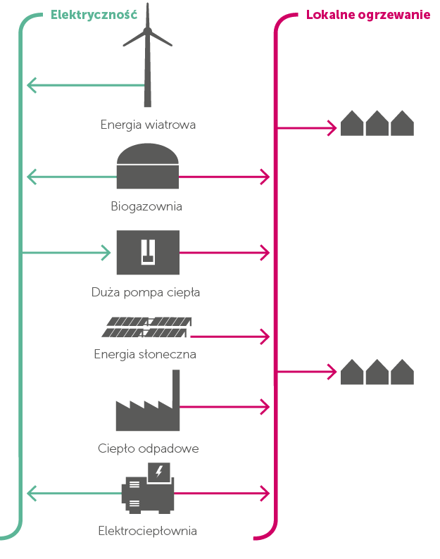 Pompy ciepła będą w przyszłości dominującym systemem ogrzewania budynków indywidualnych. W gęsto zabudowanych obszarach, połączone rozwiązania wykorzystujące sieci ciepłownicze często oferują korzyści. Odnawialne źródła energii, takie jak ciepło rzeczne lub nieuniknione ciepło odpadowe z handlu i przemysłu, a także energia słoneczna, mogą być wykorzystywane w sposób ekonomiczny. W przyszłości głównymi generatorami ciepła będą duże pompy ciepła (rysunek 1). Ponadto wykorzystanie biomasy (stałej) oferuje potencjał regionalny.