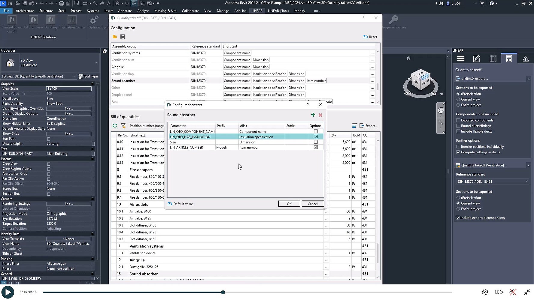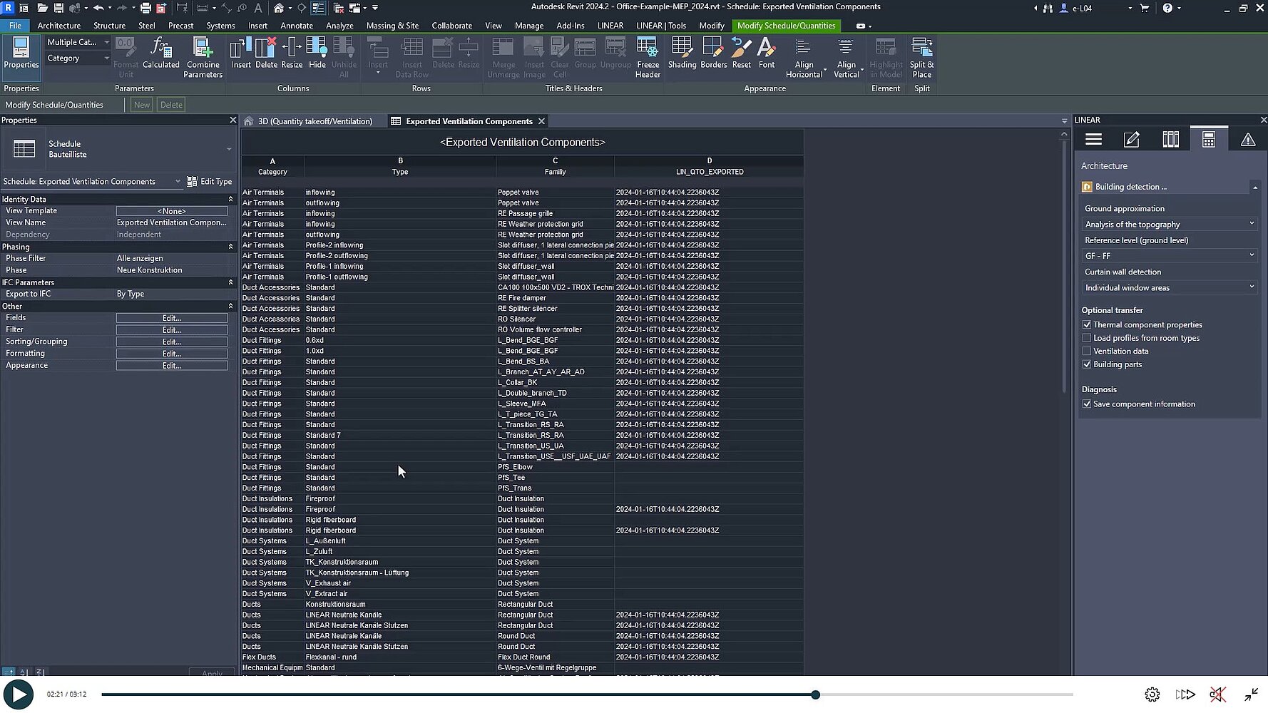 Gdy wszystko zostanie ustawione, eksport można przeprowadzić jako plik X81 zgodny z GAEB lub w formacie MMC. Eksport można również sprawdzić bezpośrednio w programie Revit, korzystając z listy komponentów.