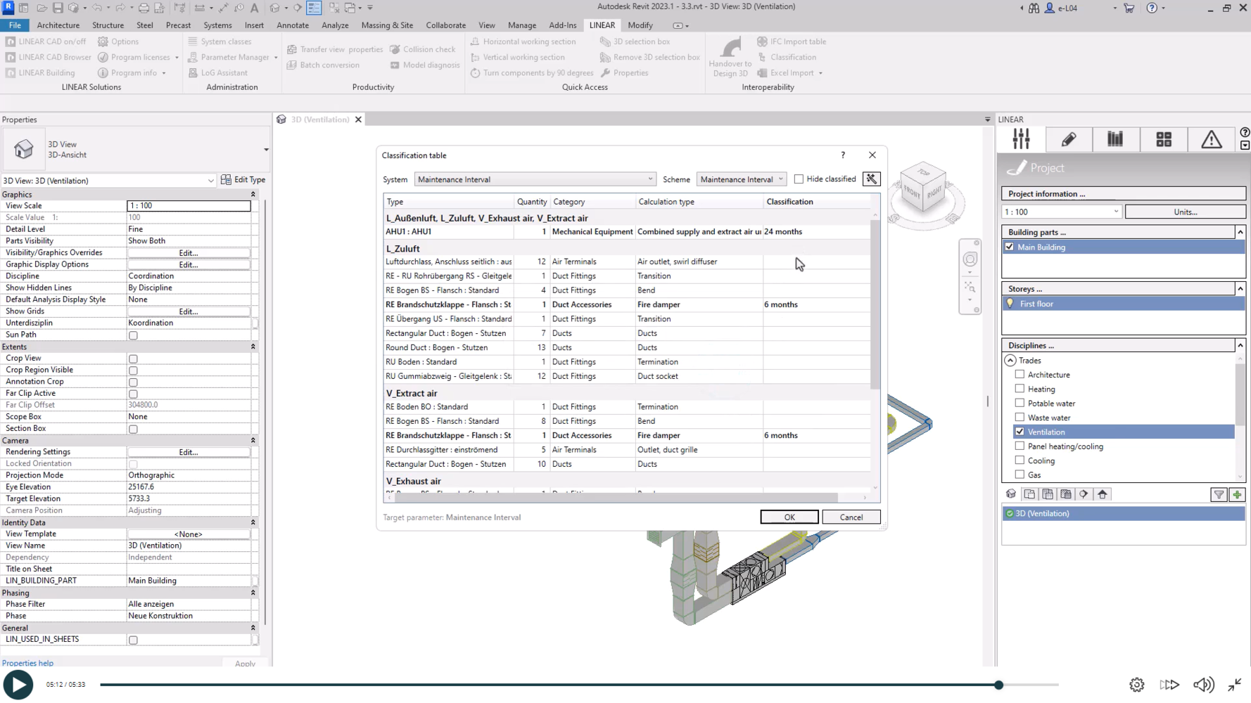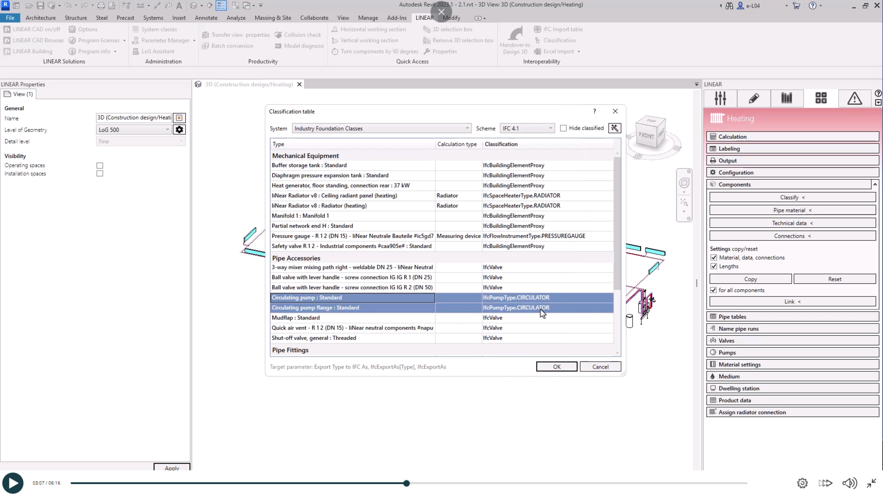Najpierw pokażemy, jak sklasyfikować wszystkie komponenty zgodnie z różnymi standardami IFC przy użyciu klasyfikacji LINEAR. Program może automatycznie przedstawić odpowiednie sugestie, które w razie potrzeby można dostosować. Zwiększa to jakość transferu danych do innych uczestników planowania za pośrednictwem IFC.