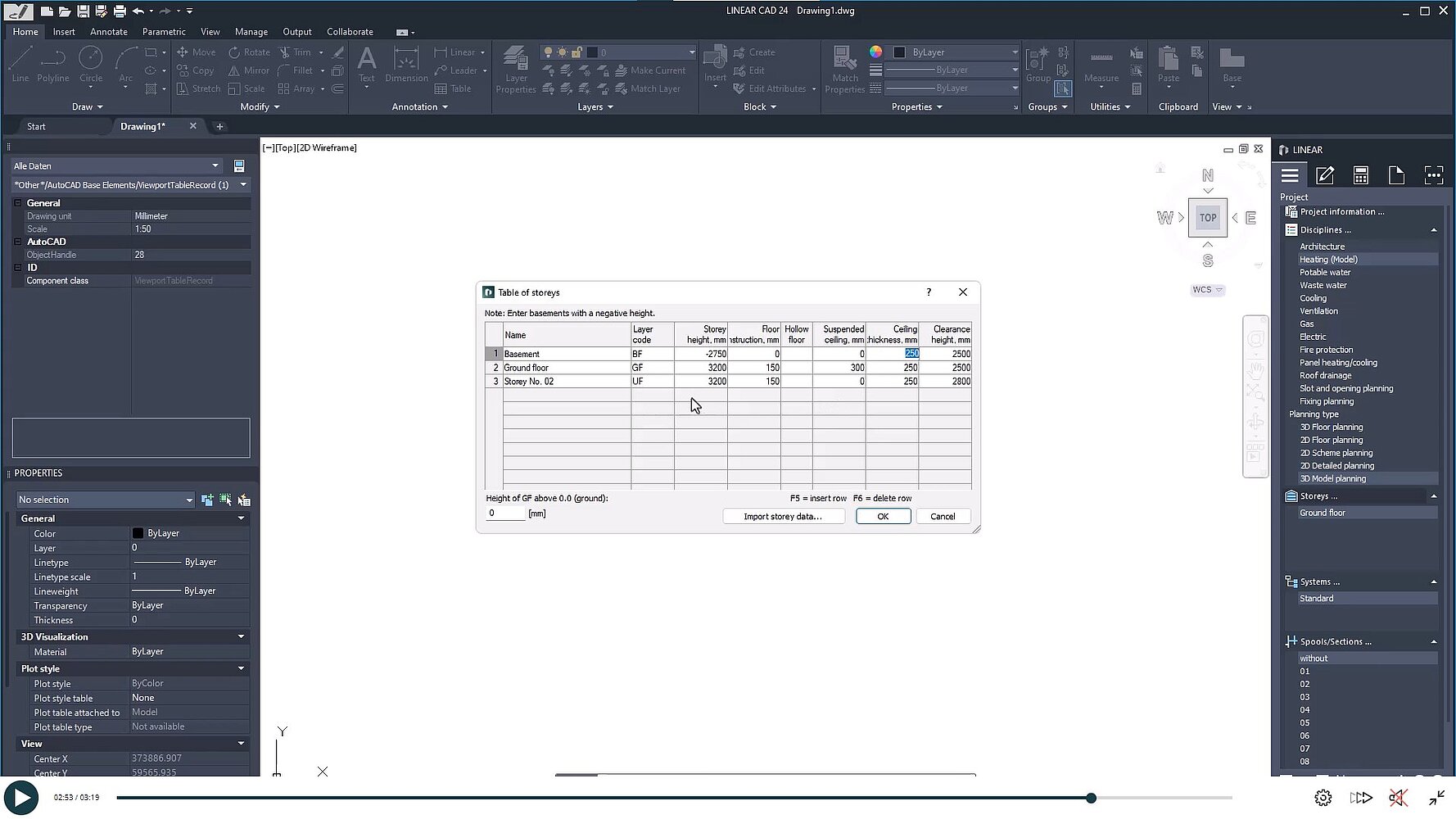 Zaczynamy od tabeli kondygnacji, która jest istotna w prawie każdym projekcie i służy do określania wysokości, konstrukcji podłóg, sufitów podwieszanych i grubości sufitów.