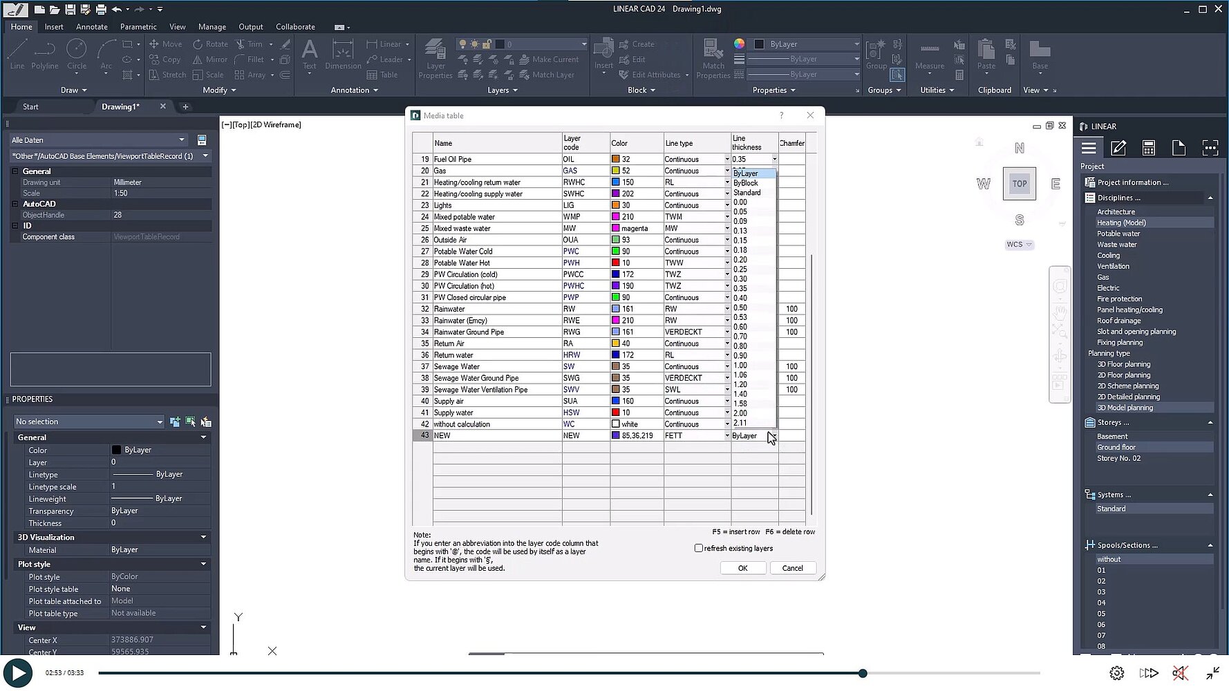 Na koniec przyjrzymy się tabeli izolacji dla rur 3D i kanałów powietrznych. Tutaj można edytować i rozszerzać oznaczenia materiałów izolacyjnych.