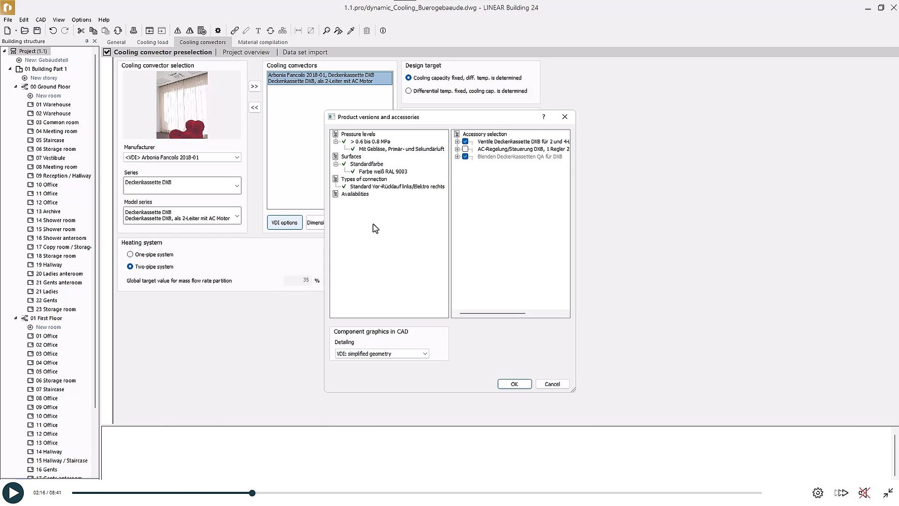 Erfahren Sie in diesem Kurs, wie Kühlkonvektoren basierend auf der berechneten Kühllast ausgelegt werden. Anhand eines beispielprojektes demonstrieren wir die Auslegung in einem Bürogebäude mit LINEAR Building.