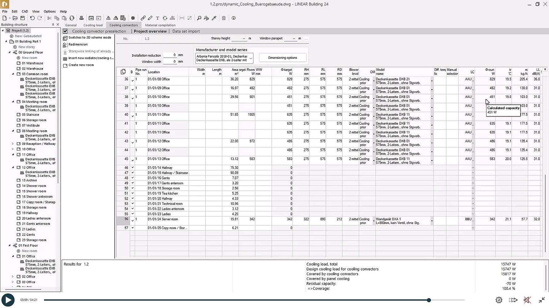 Konwektory chłodzące są następnie automatycznie wymiarowane w poszczególnych pomieszczeniach na podstawie wstępnego wyboru i w celu dopasowania do odpowiedniego obciążenia chłodniczego.