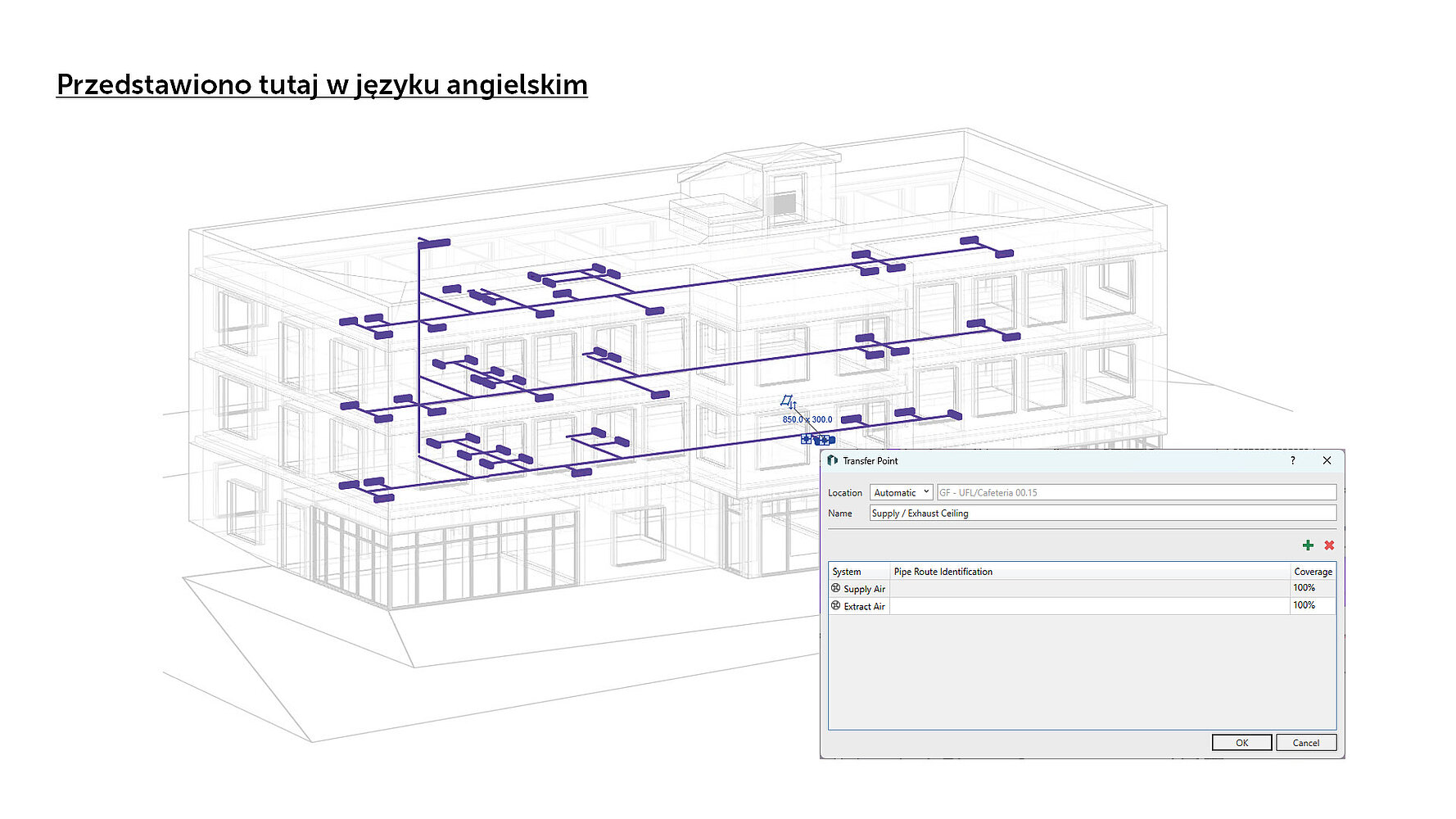 Podczas gdy architekci wciąż opracowują plan piętra, rozmieszczenie instalacji technicznych opiera się często na przypuszczeniach. Ewentualne zmiany mogą szybko stać się bardzo kosztowne. Niniejszy artykuł pokazuje, w jaki sposób oparte na BIM koncepcje tras rurociągów typu „lean” rozwiązują ten problem już na wczesnym etapie: przy zaledwie kilku danych wejściowych odcinki sieci są automatycznie wymiarowane i w sposób spójny przekształcane w bryły tras rurociągów oraz same rury. Praktyczny przykład systemu wentylacyjnego dla biur wyraźnie pokazuje, w jaki sposób można szybko sprawdzić różne warianty, uzyskać przekroje oraz niezawodnie skoordynować przestrzenie instalacyjne z architekturą. Nowe możliwości wymiarowania oferowane przez koncepcję tras rurociągów tworzą ciągły przepływ pracy – od karty danych pomieszczenia po dalsze szczegółowe projektowanie.