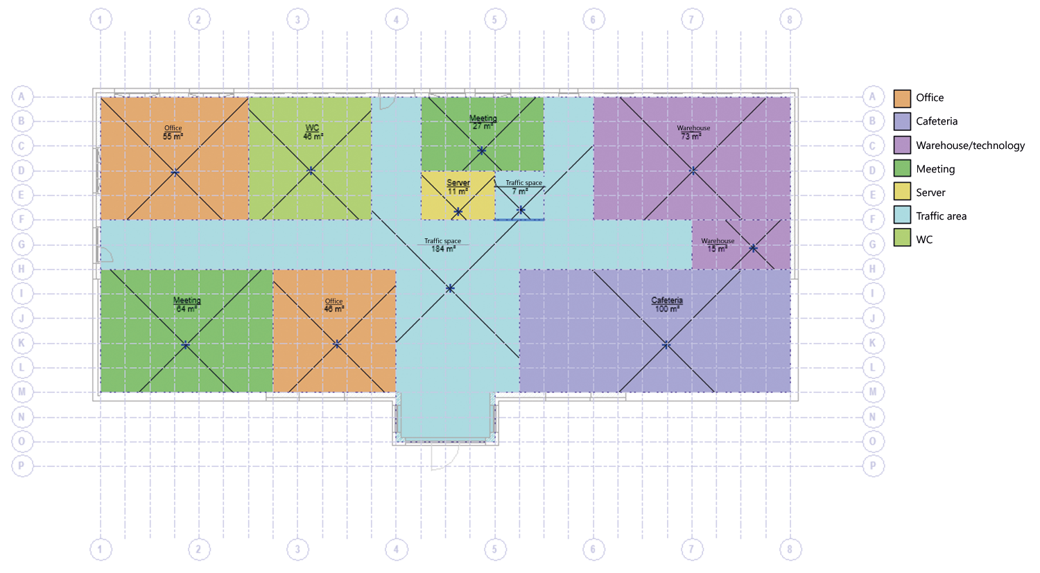 In the first step of the functional concept, a concept body is used to define the building outlines and distribute the functional areas along the building grid on each floor so that the specified areas of the functional areas are roughly adhered to and the relationships between the functional areas are optimally coordinated. With this functional concept, the size of the equipment rooms is determined in a first pipeline corridor concept and again aligned with the functional concept. The functional areas planned for the equipment rooms are adapted to the estimated space requirements, which in turn again has an impact on the design of the other functional areas. In the next step, the positions and the required shaft dimensions are determined and again compared with the functional concept. If the positions of the equipment rooms and shafts harmonize well with the functional concept, the pipeline corridor concept is expanded and in the following design step the individual functional areas on the floors are connected to the shafts via pipeline corridors. Here, too, several steps may be necessary until an optimized solution is found for the functional concept and for the positions and dimensions of the shafts and pipeline corridors.