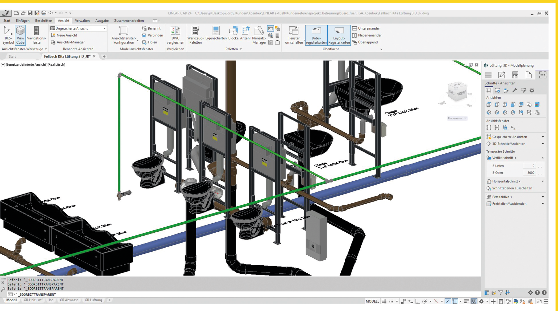 К. Косубек : Впервые мы познакомились с программным обеспечением LINEAR в 2000 году через промышленное решение от Viega. В начале 2008 года мы расширили это решение, включив в него вентиляцию, сначала в 2D, а затем постепенно расширяя его. Качество планов, которые мы получали до этого момента, часто было низким, поэтому мы решили реализовать их самостоятельно. LINEAR был единственным программным обеспечением, которое могло удовлетворить наши высокие требования.