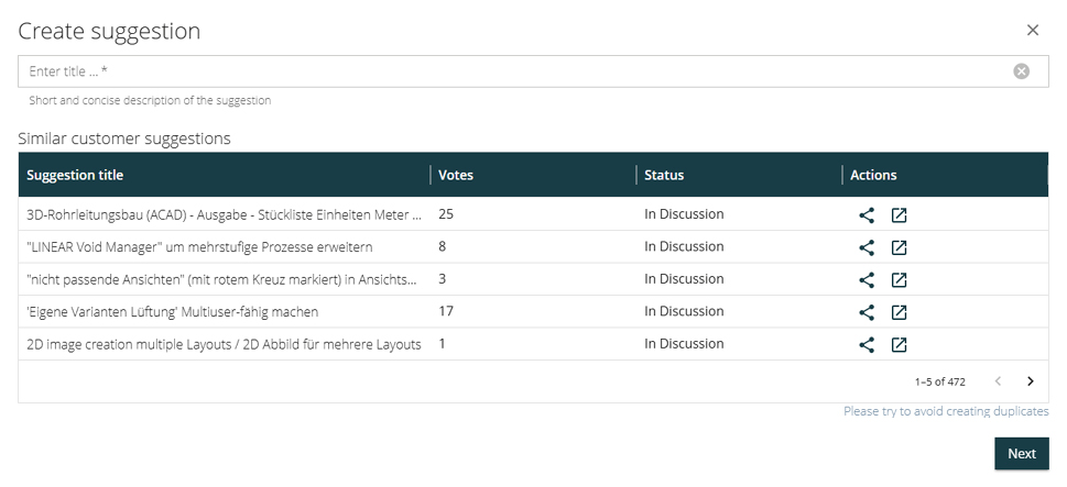 Первоначальная платформа уже предлагала возможность подавать предложения по новым функциям, оценивать их и делиться ими с другими. Процесс состоит из четырех этапов: подача предложения, рассмотрение, голосование и, наконец, интеграция в программное обеспечение. Платформа характеризуется прозрачной системой оценки и тесным сотрудничеством между сообществом пользователей и руководством продукта.