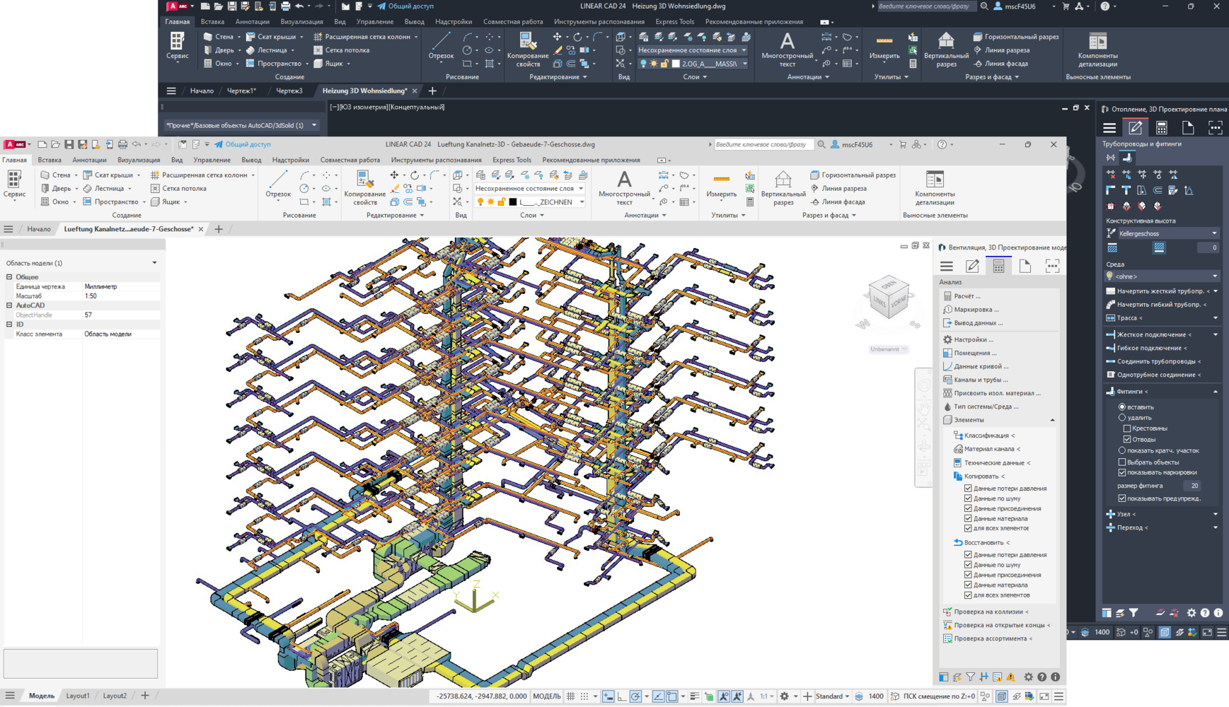 Заметным нововведением в среде AutoCAD является специально разработанный диалог свойств LINEAR. Он позволяет легко просматривать и корректировать данные, относящиеся как к рисованию, так и к расчетам, в том числе и те, которые важны для BIM-процессов. Выбрав отдельный или несколько компонентов, можно отобразить все данные и при необходимости одномоментно скорректировать их. На первый взгляд, это по сути новая функция имеет мало общего с новым пользовательским интерфейсом, но при ближайшем рассмотрении оказывается, что дополнительное (помимо панели управления) новое окно можно прикрепить к другой стороне экрана, и во время работы оно очень удобно для просмотра и настройки всевозможных данных. В будущем мы продолжим значительно улучшать удобство и производительность, что еще раз подчеркивает наше стремление к целостному и продуктивному пользовательскому опыту.