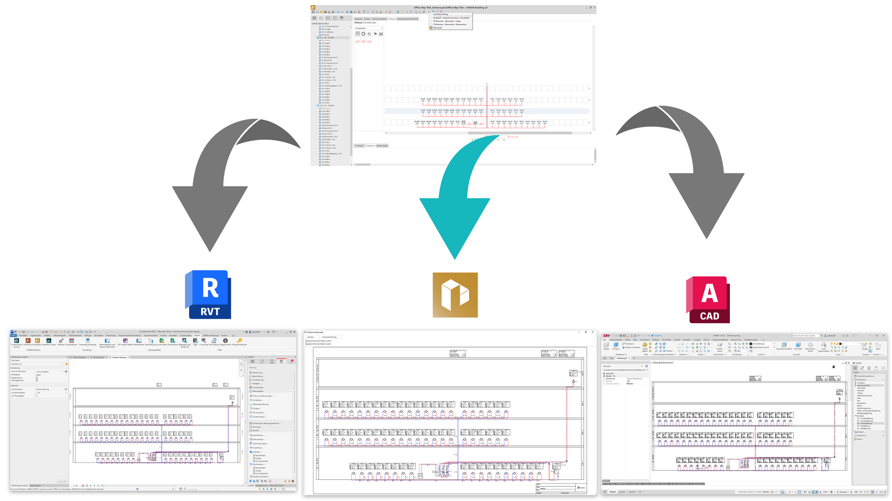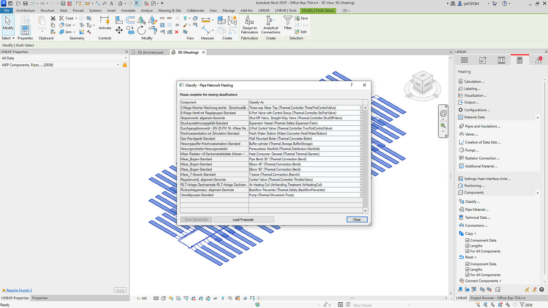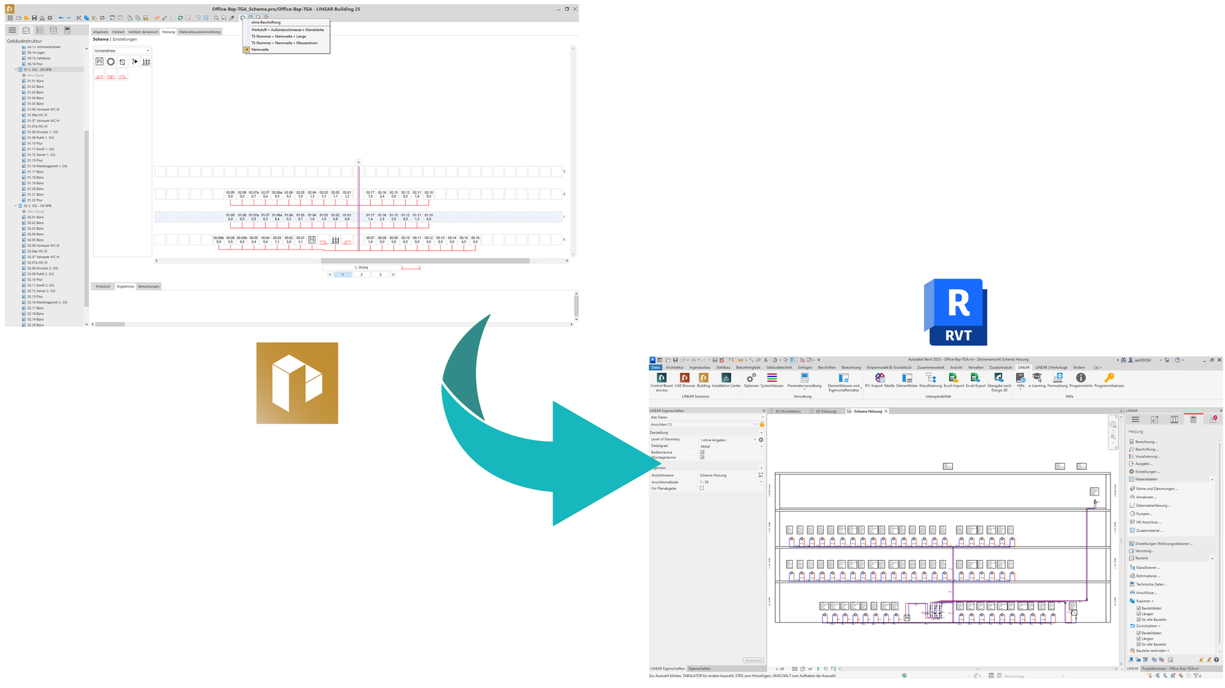 Помимо возможности создания схем трубопроводных сетей в LINEAR Building, теперь есть возможность перенести схему в Autodesk Revit. Это позволяет интегрировать схему в модель Revit на любой стадии проекта. В версии V25.0 эти опции доступны для отопления и питьевой воды, а также для сточных вод. В Revit вам доступны все функции дисциплины "Схема" для дальнейшей адаптации и оптимизации автоматически созданной схемы.