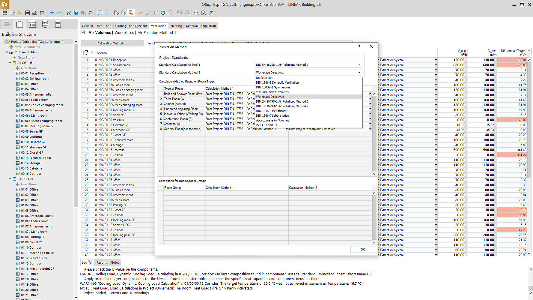 Расчет объема воздуха теперь также централизован в LINEAR Building. Теперь вы можете централизованно управлять всеми объемами воздуха по помещениям. Интеграция также создала более тесную связь с расчетом отопительной нагрузки, так что определенные объемы воздуха попадают непосредственно в расчет отопительной нагрузки. Затем потоки объемов воздуха просто передаются в CAD с помощью синхронизации между Building и CAD. Объемы воздуха распределяются по воздухораспределителям в пересмотренном диалоге помещений и учитываются при расчете сети воздуховодов. Эта функция не только позволяет рассчитывать объемы воздуха в соответствии с дополнительными стандартами, но и обеспечивает оптимизированный рабочий процесс, повышающий эффективность проектов. Возможности применения были значительно расширены, и теперь вы можете рассчитывать объемы воздуха в соответствии со следующими стандартами: