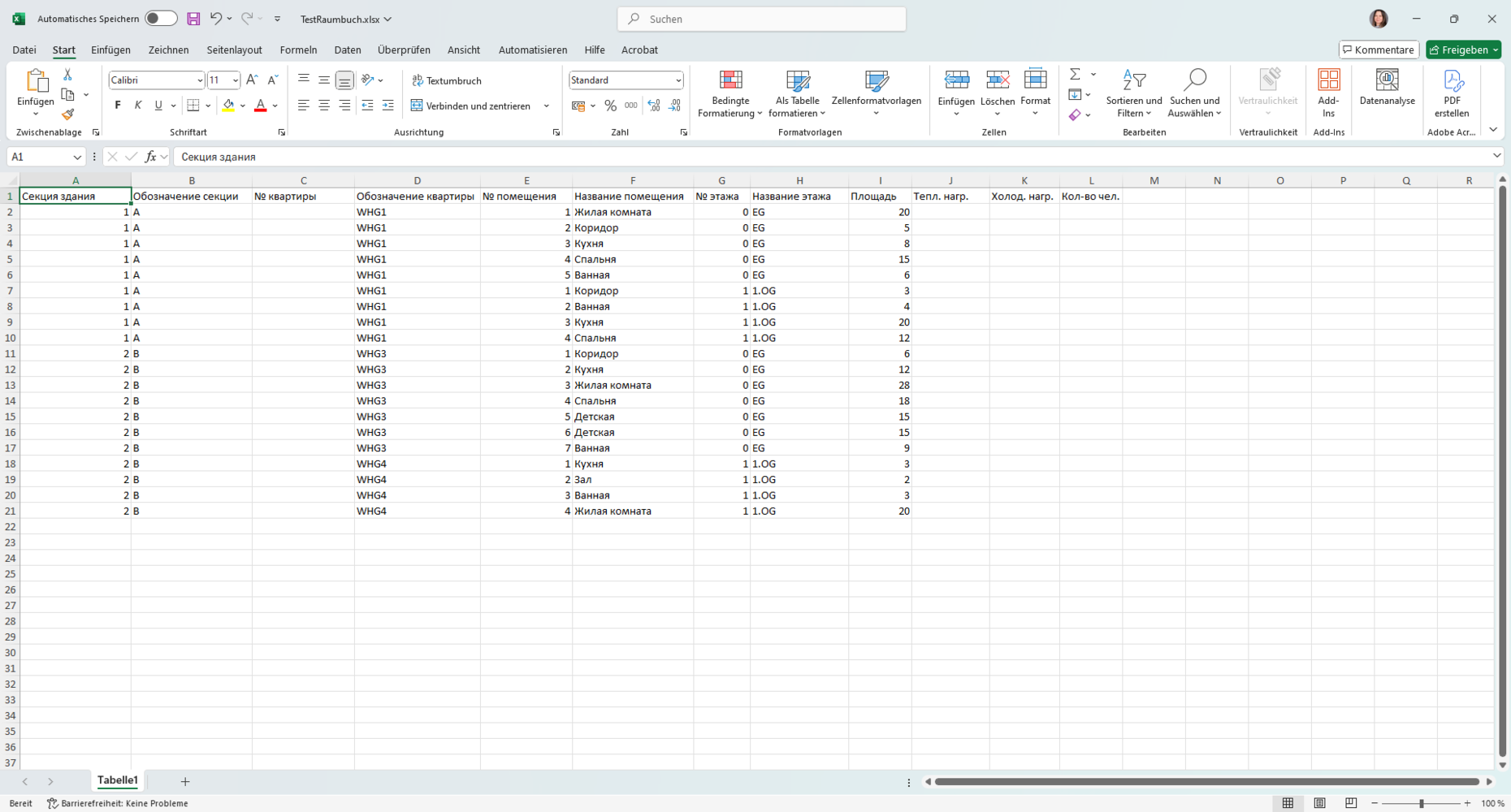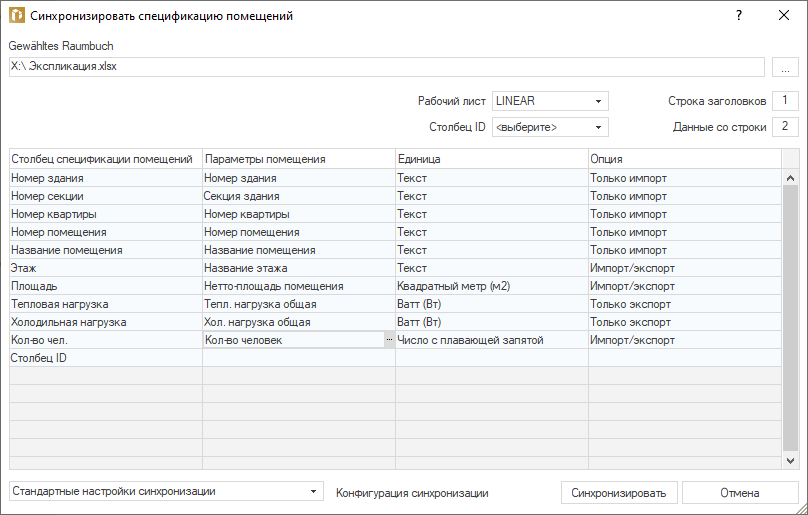 - Импорт данных спецификации помещений из Excel: