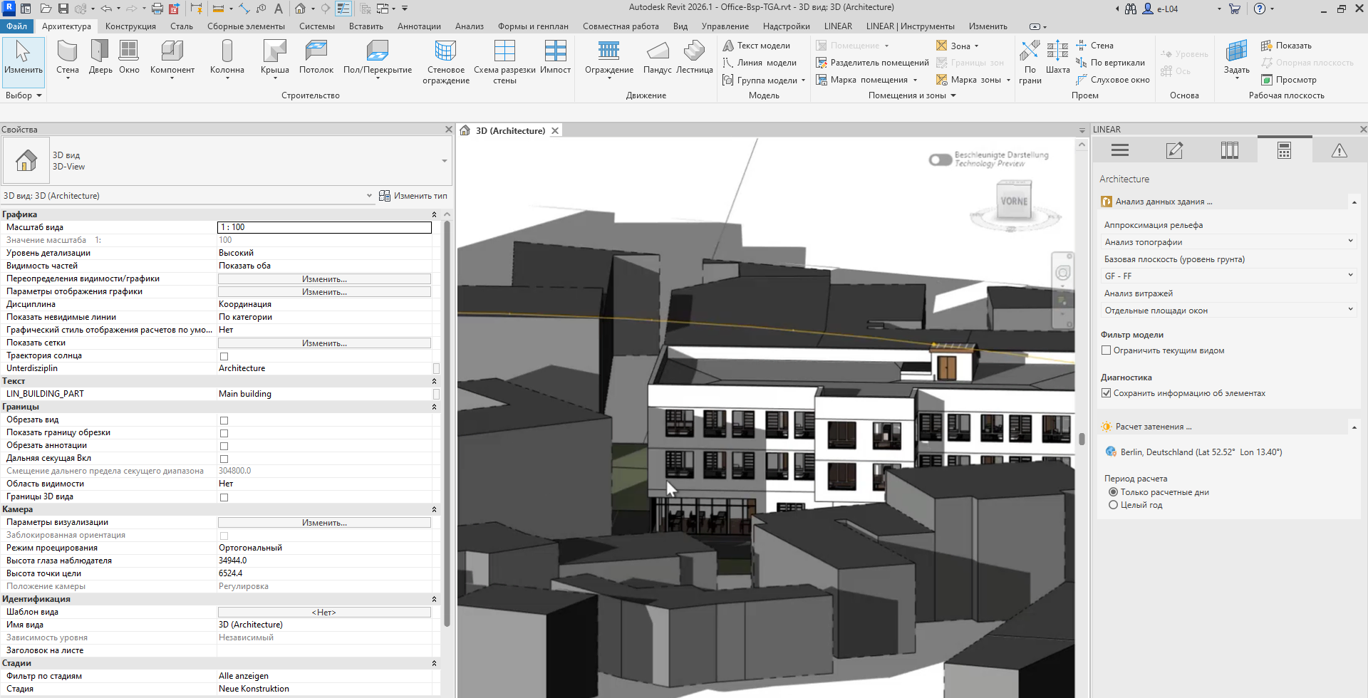 Благодаря новой функции расчета затенения вы теперь можете анализировать собственное и внешнее затенение зданий непосредственно на основе модели Revit — точно, автоматически и полностью интегрированно в планирование энергопотребления.