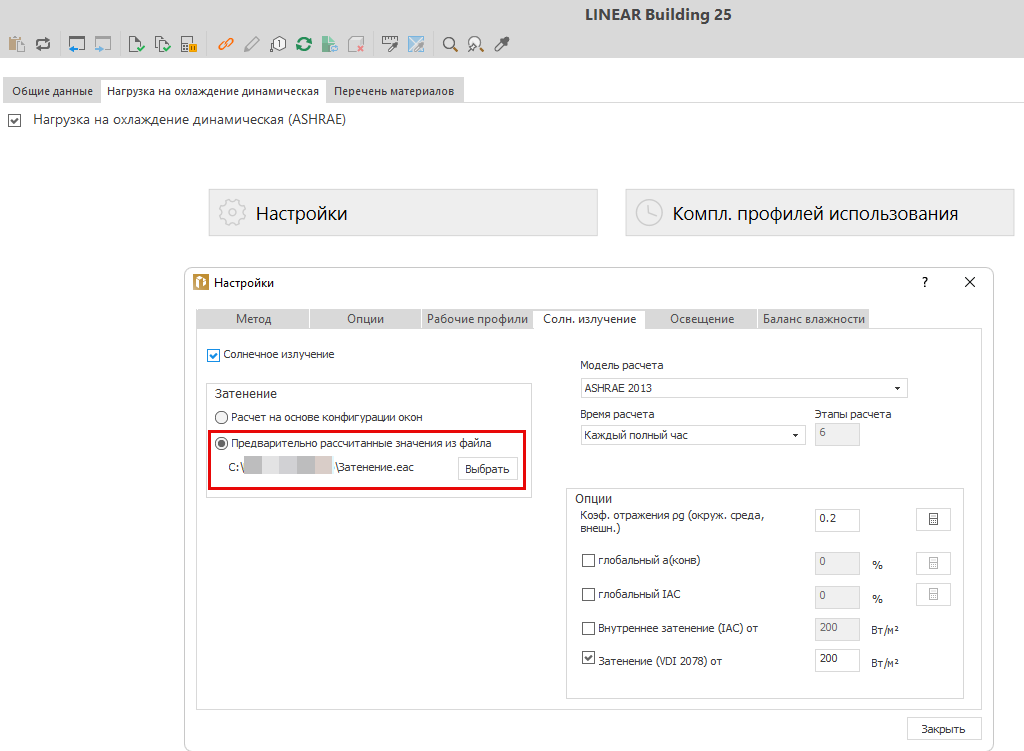 Степень затенения отдельных окон визуально представлена в виде кривой. Это позволяет быстро проверить достоверность результатов и целенаправленно оптимизировать их. - Непосредственный учет в расчете нагрузки на охлаждение: